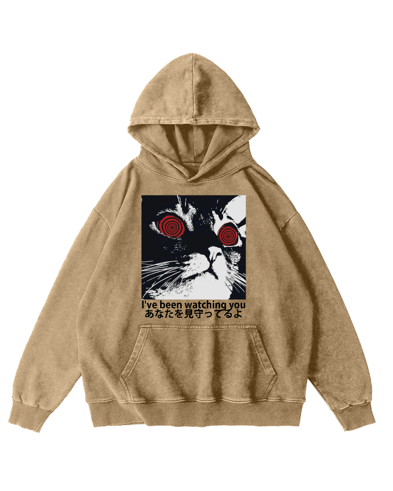 Cat is watching you Vintage Washed Hoodie