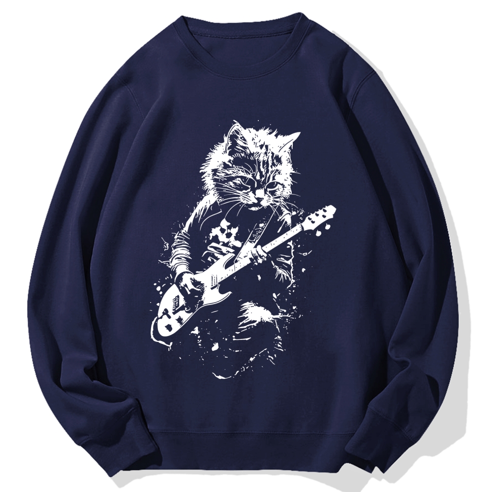 Funny Cat Playing Guitar Cotton Sweatshirt