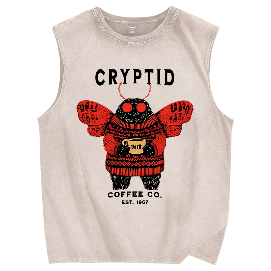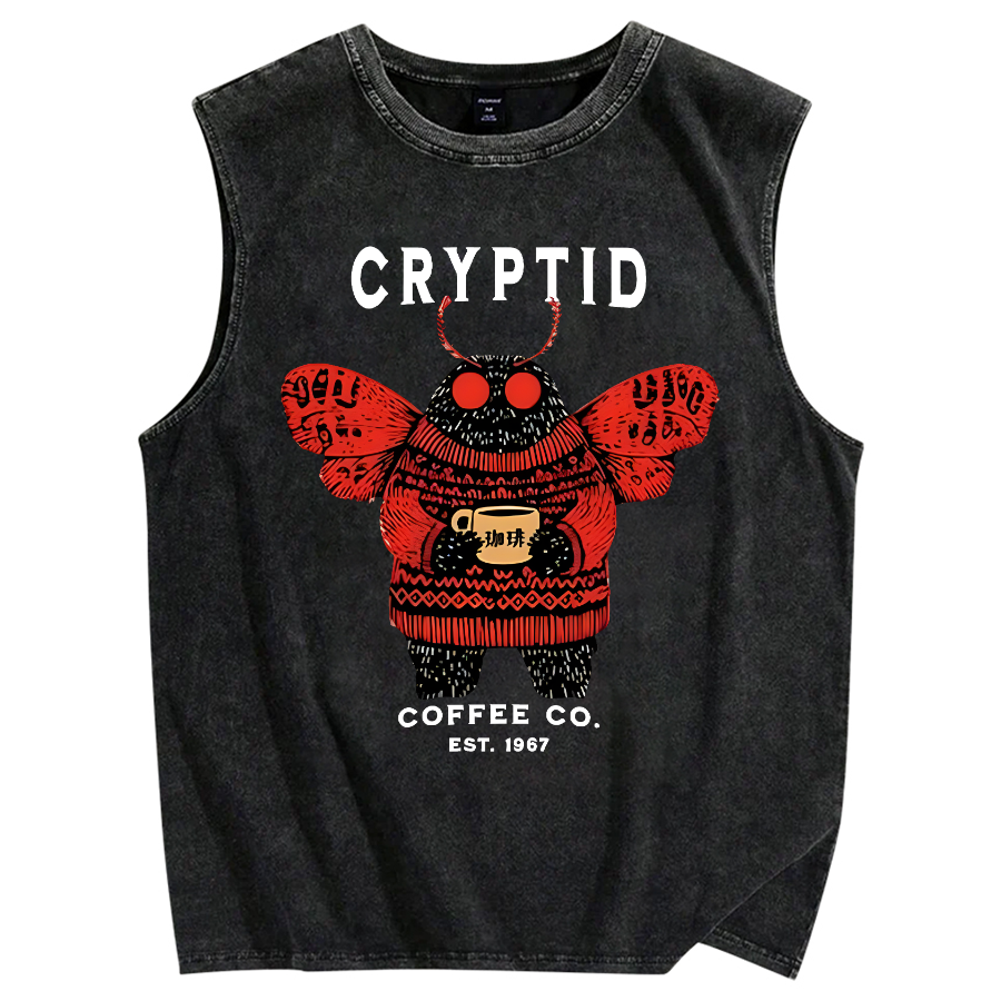 Mothman Coffee Vintage Distressed Washed Tank Top