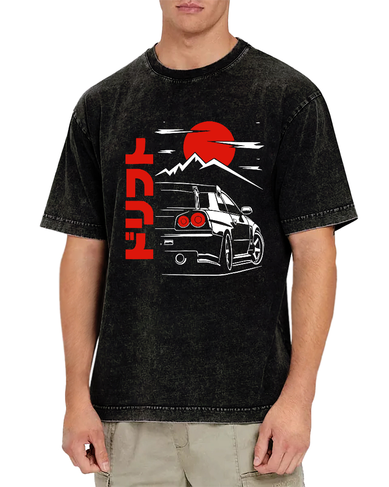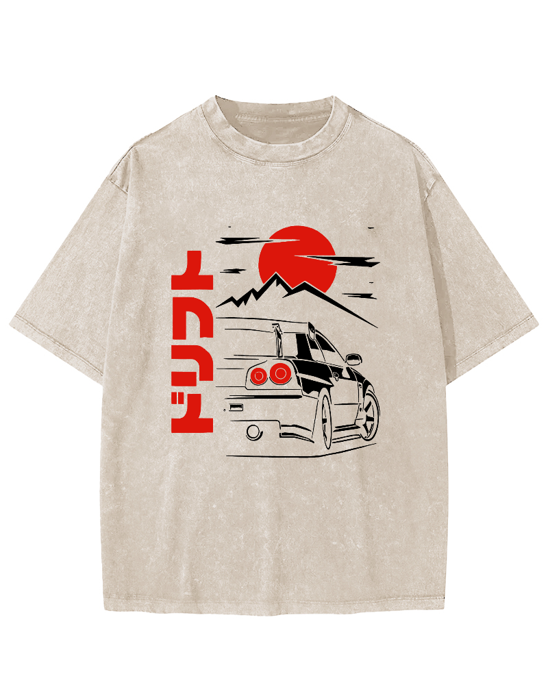 Sunrise Motorcycle Japanese Style Vintage Washed T-shirt