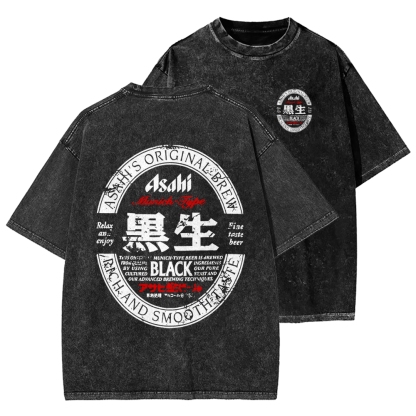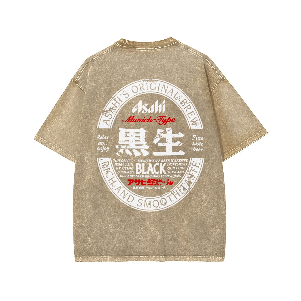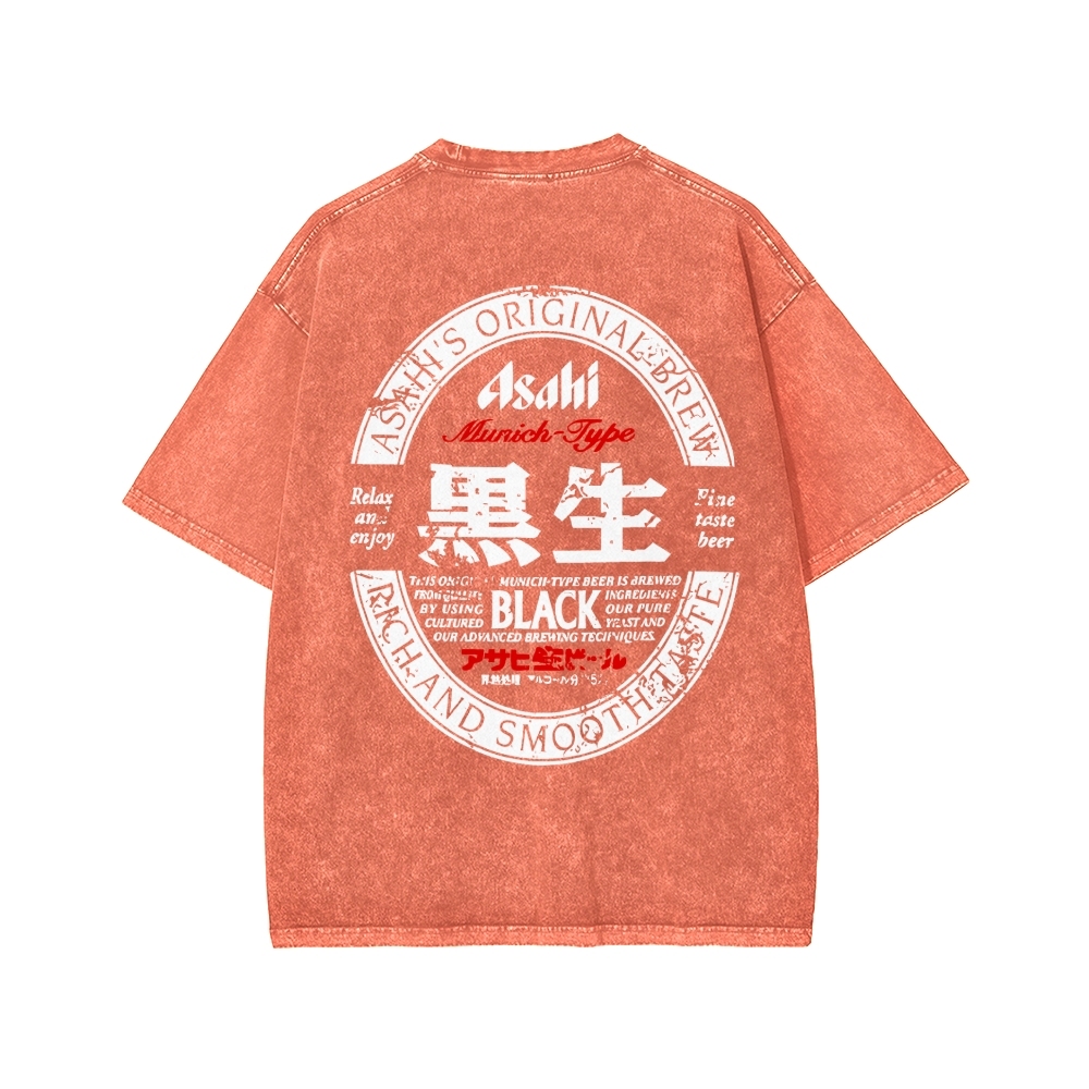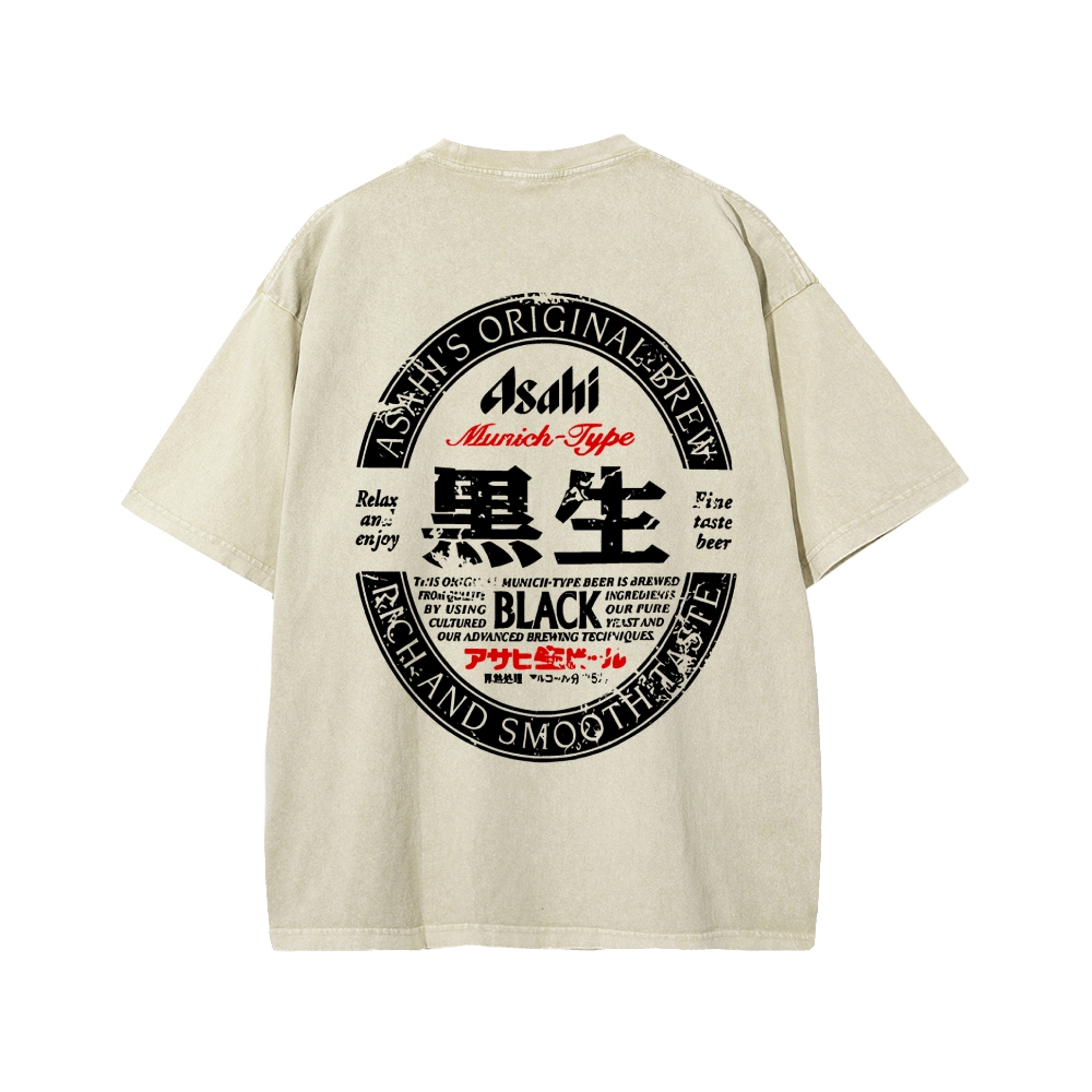 Asahi Black Nama Beer Front And Back Printing Washed T-shirt