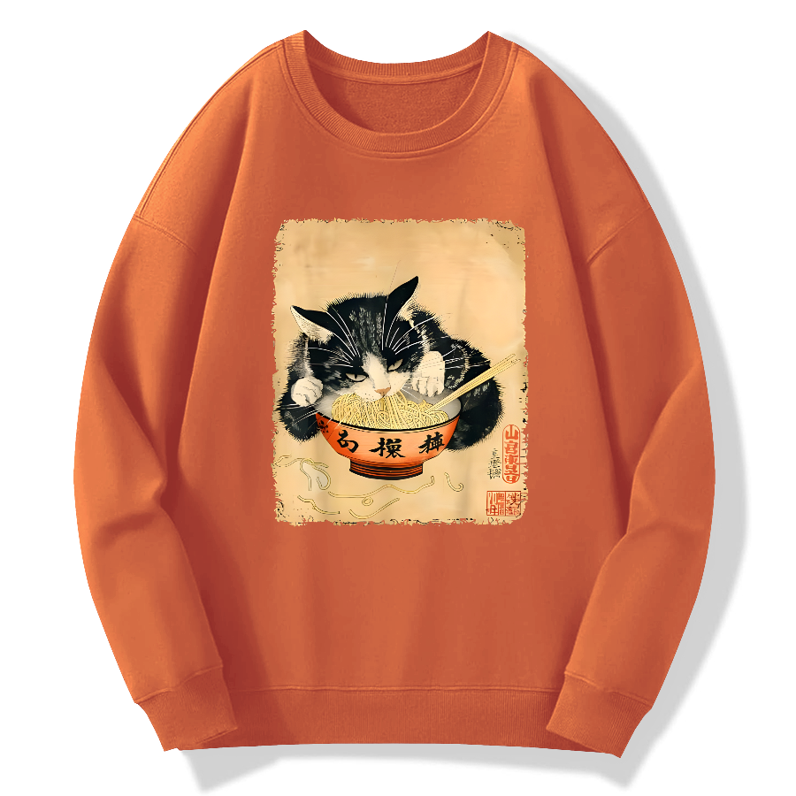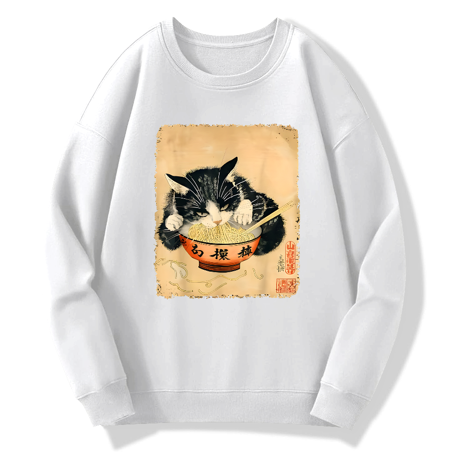 Black Cat and Lamian Noodles Food Retro Cotton Pullover Sweatshirt