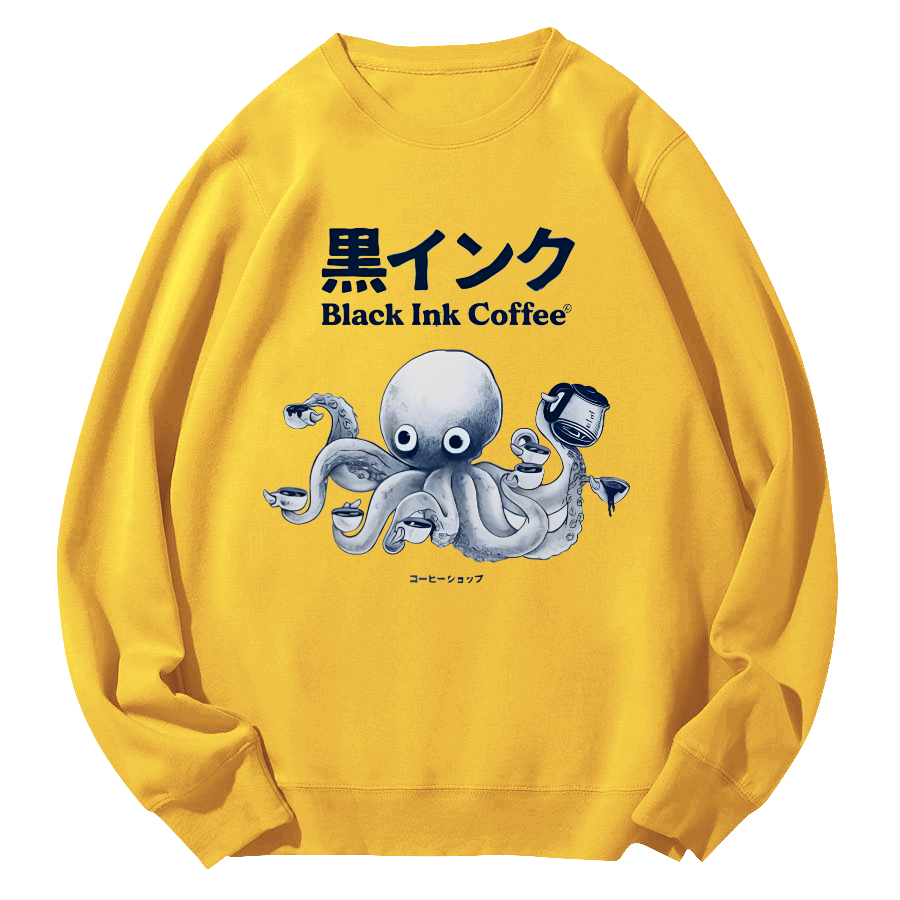 Black Ink Coffee Octopus Japan Round Neck Sweatshirt