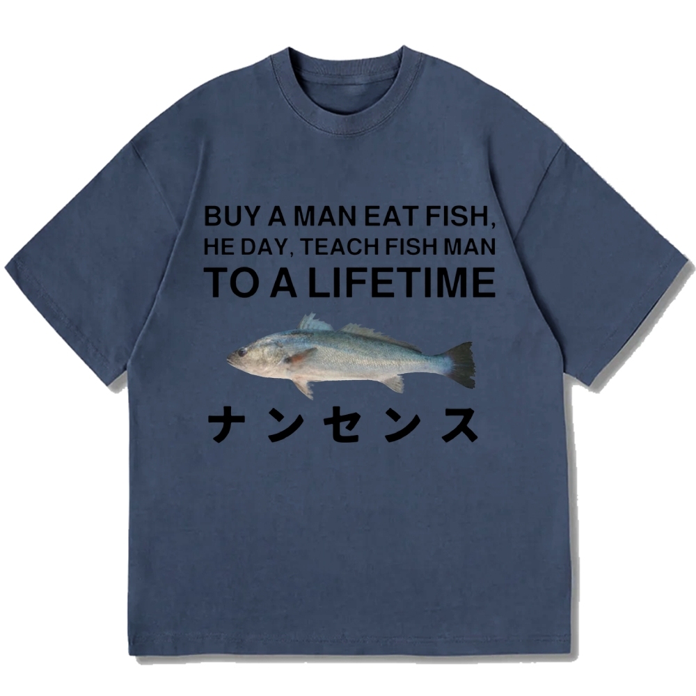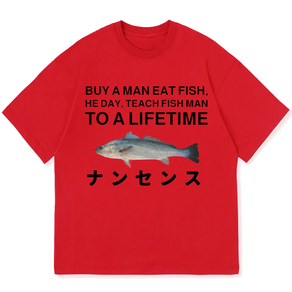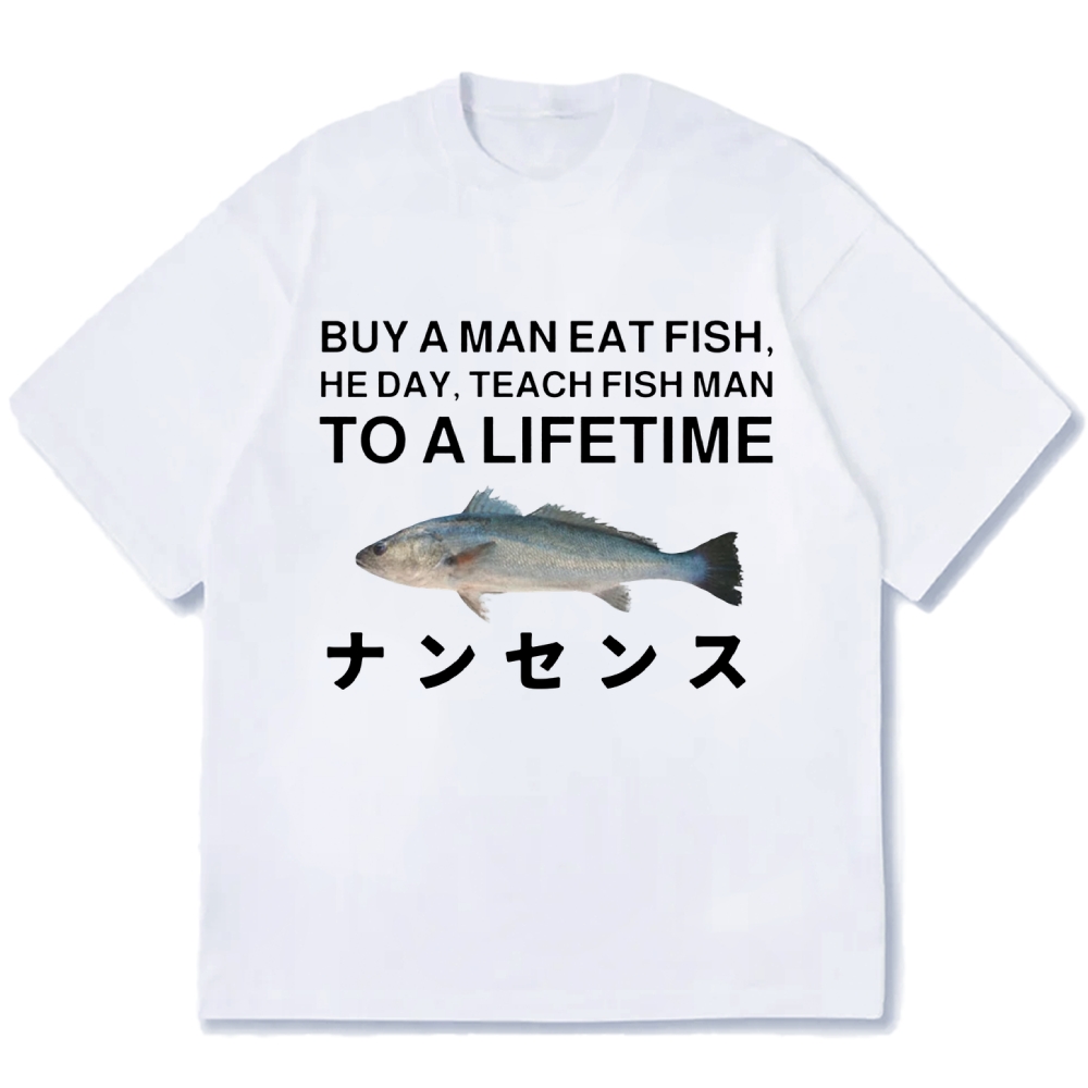Buy a Man Eat Fish shirt Funny Meme Cotton casual T-shirt