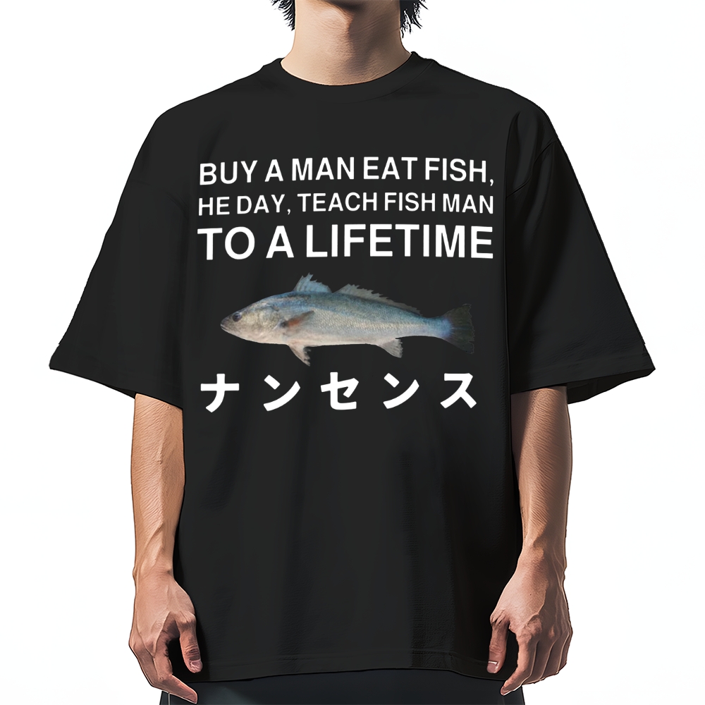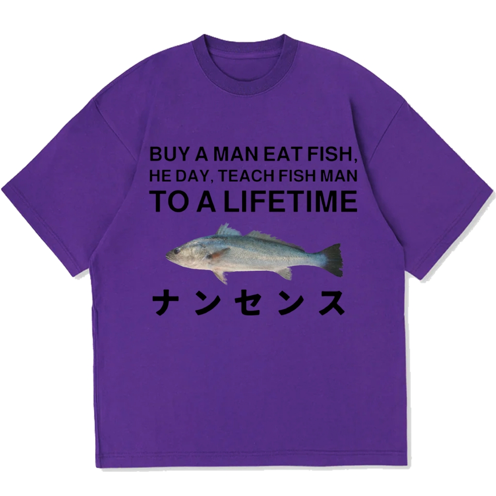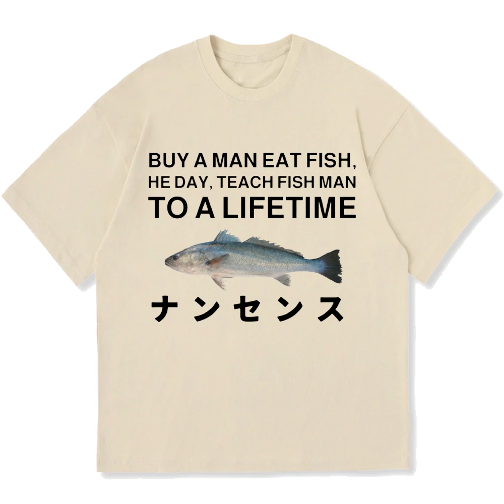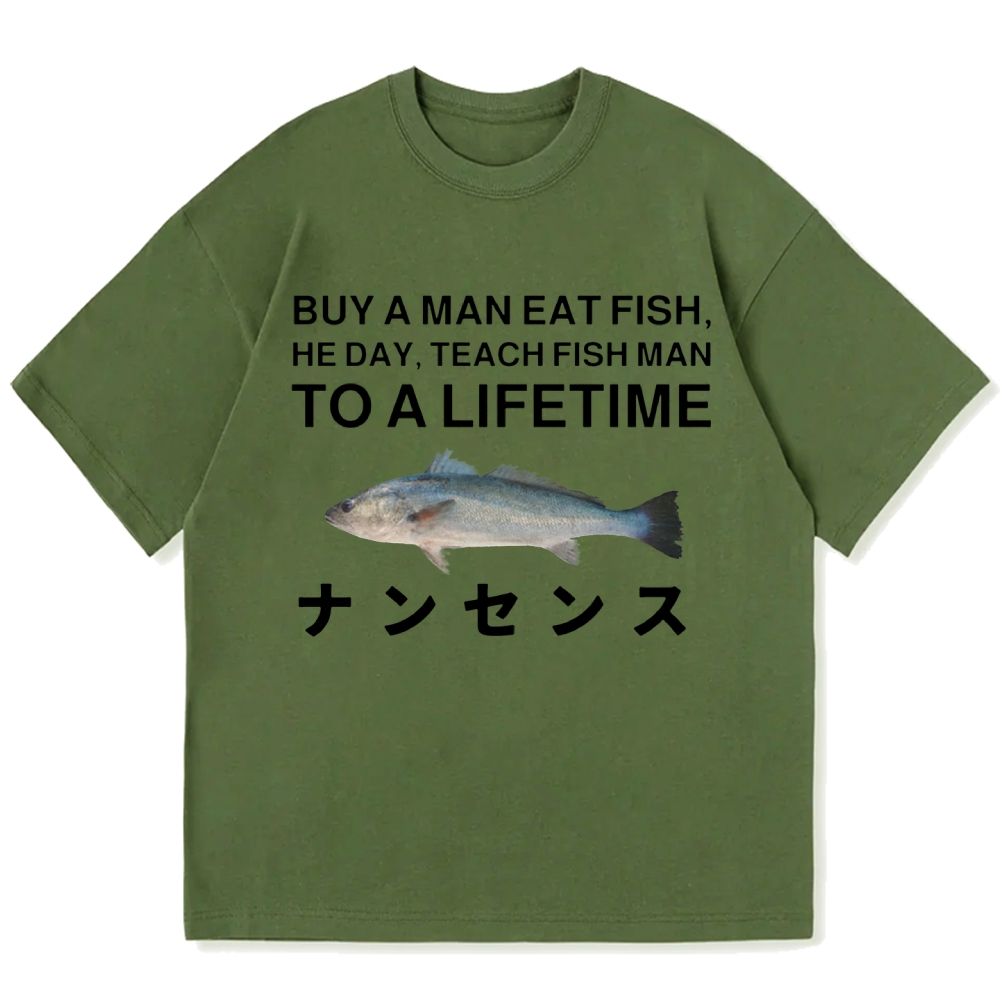 Buy a Man Eat Fish shirt Funny Meme Cotton casual T-shirt