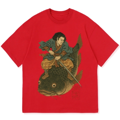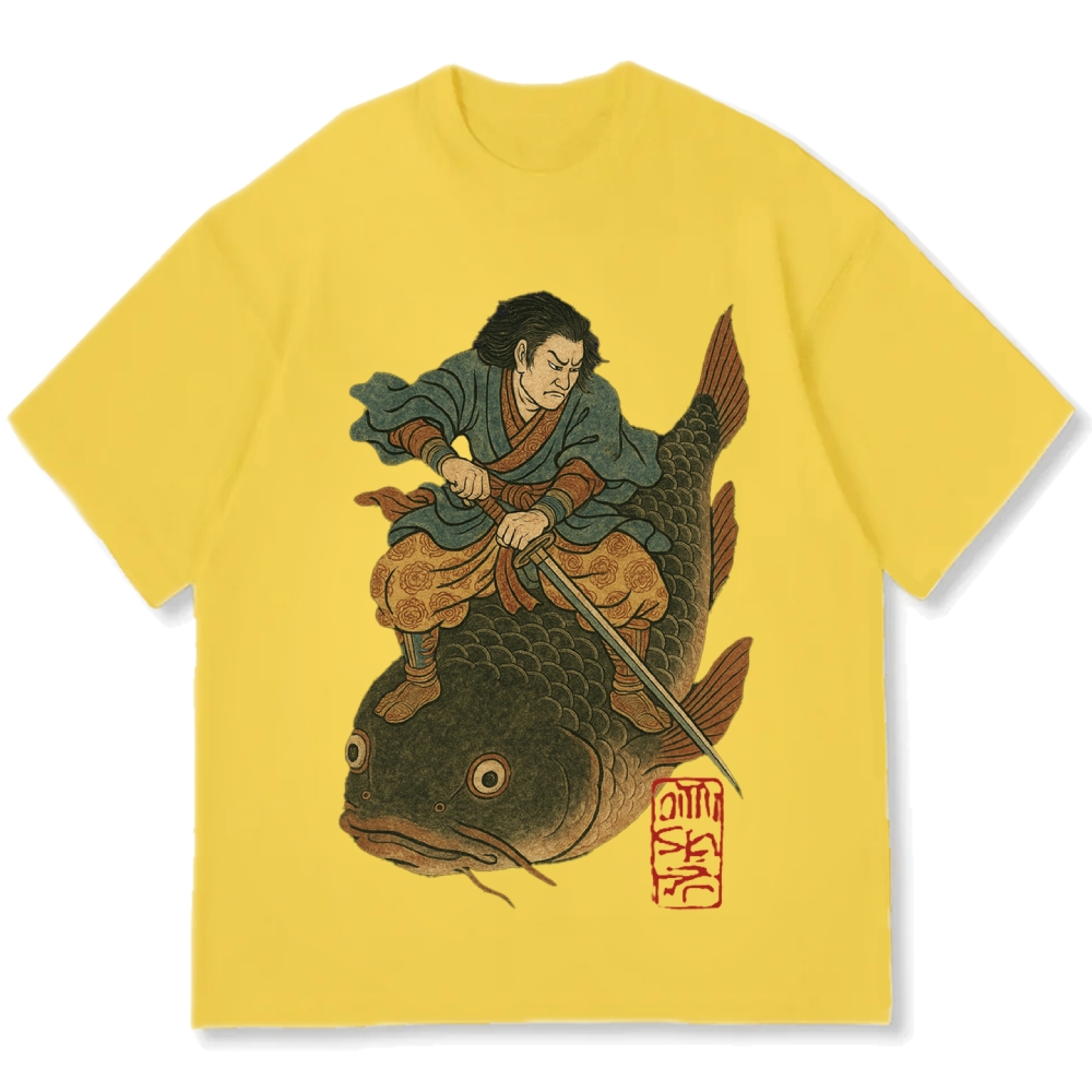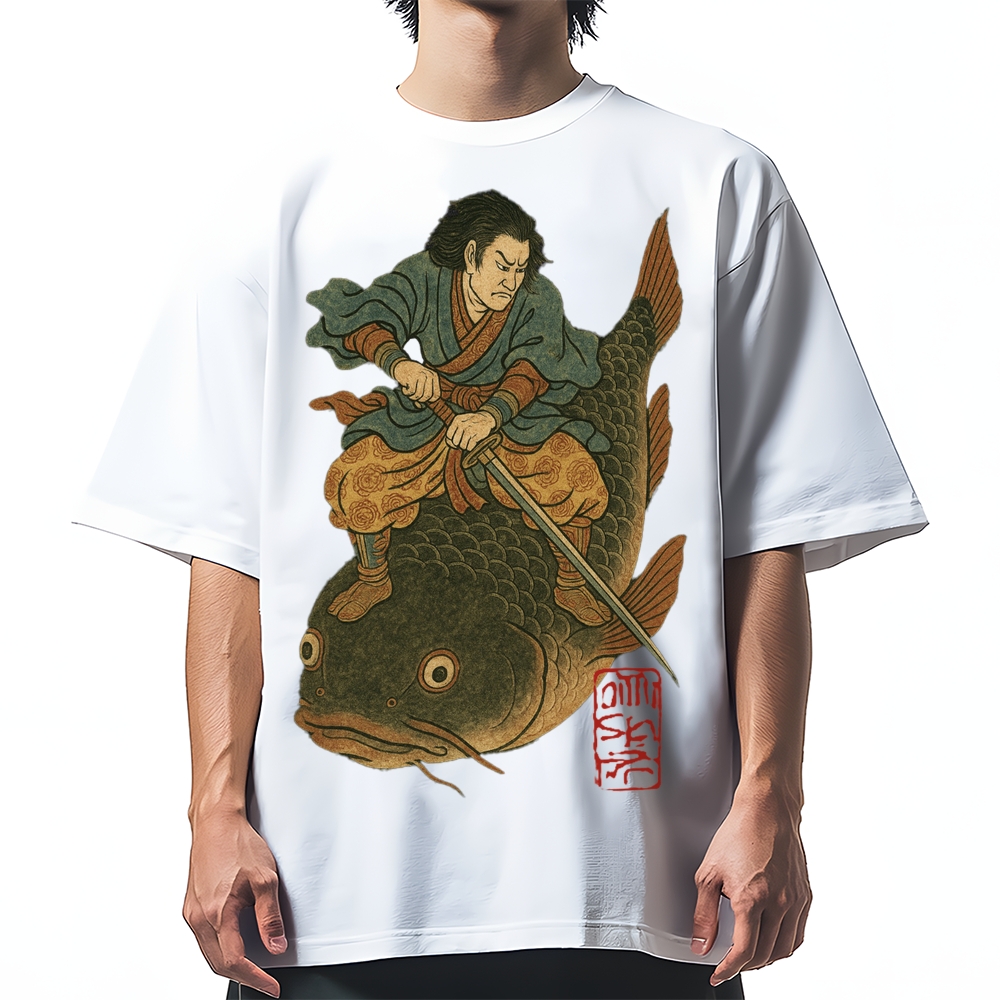 Catfish Samurai Ukiyo-e Cotton casual T-shirt