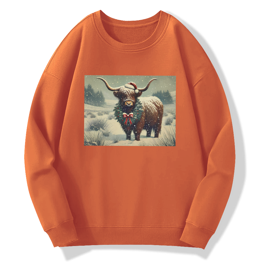 Christmas Highland Cattle Cotton Pullover Sweatshirt