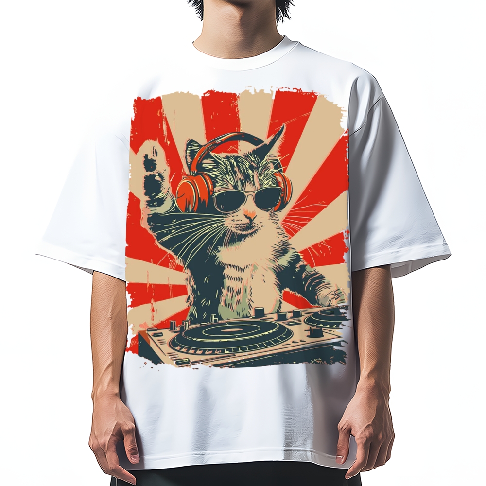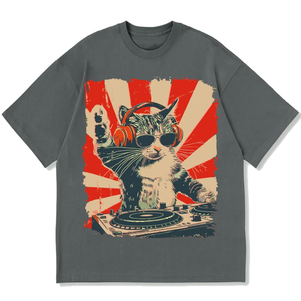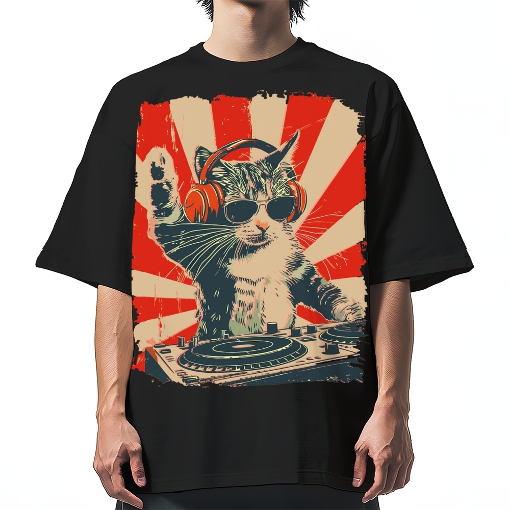 Cool Cat DJ Poster Showa Retro Cotton casual T-shirt