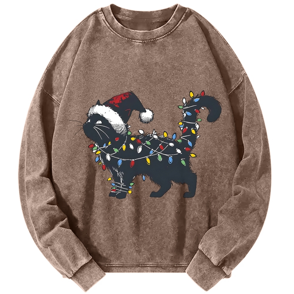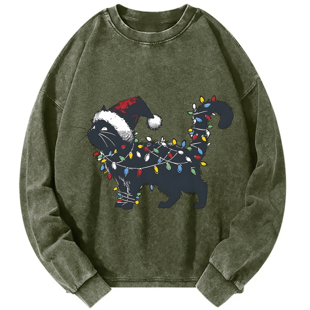 Cute Black Cat Christmas Vintage Washed Sweatshirts