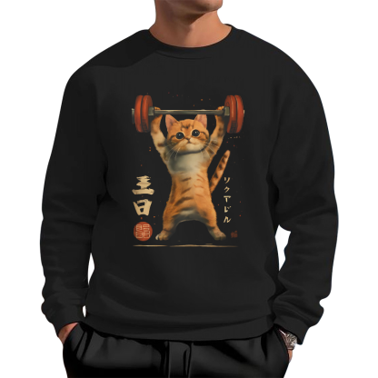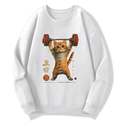 Cute Cat Weightlifting Cotton Pullover Sweatshirt