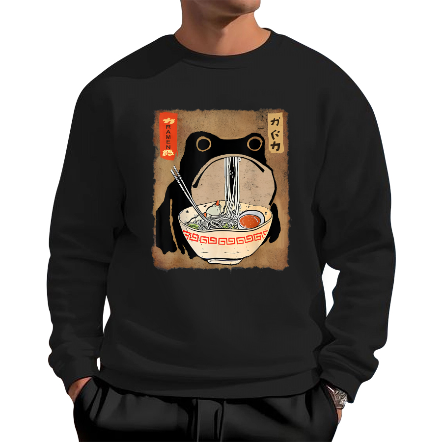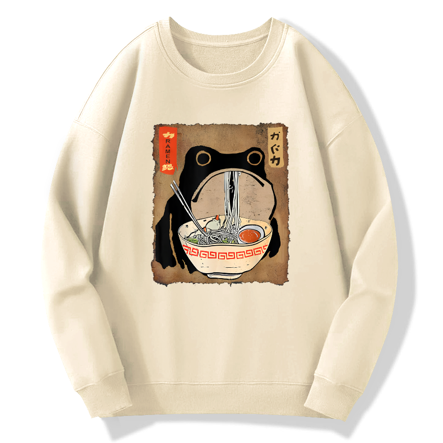 Cute Frog Eats Lamian Noodles Cotton Pullover Sweatshirt