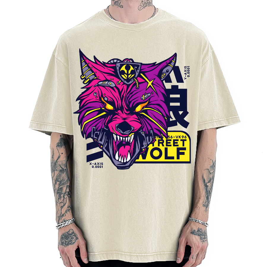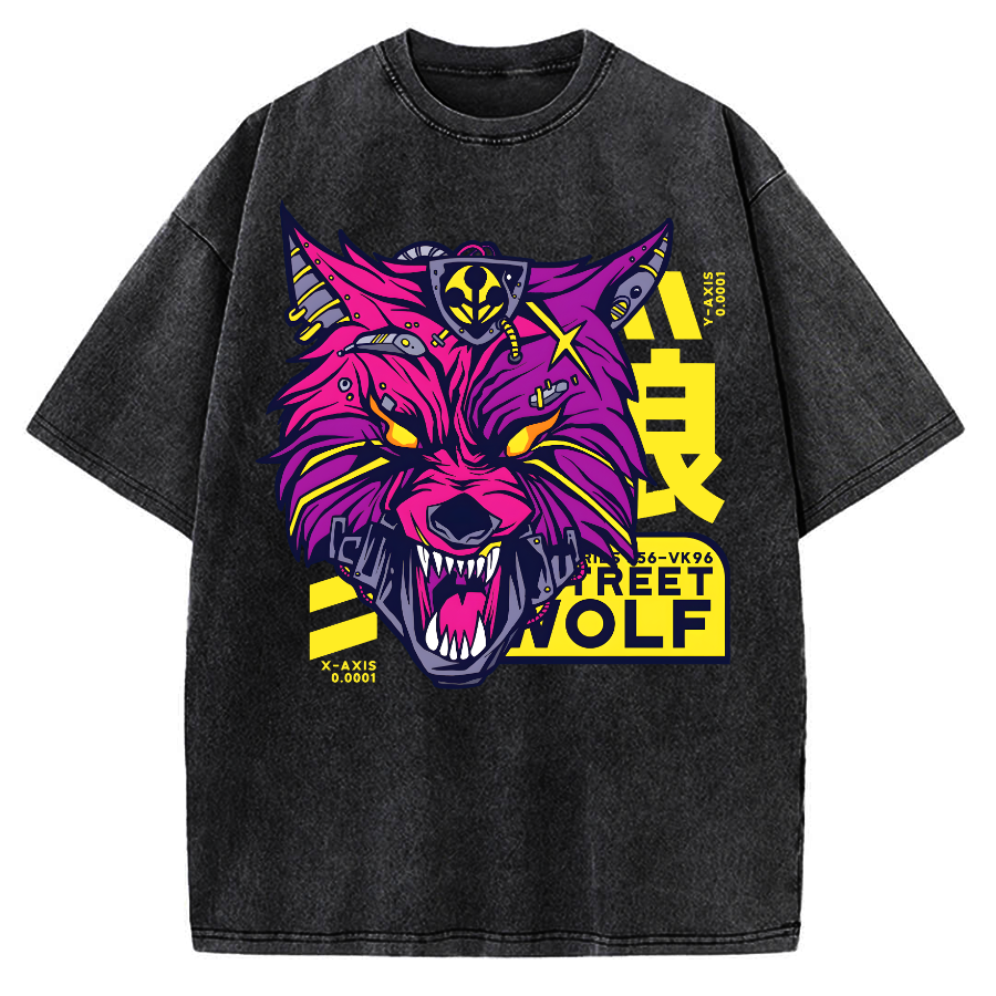 Cyberpunk wolf in japanese oni style Vintage Washed T-shirt