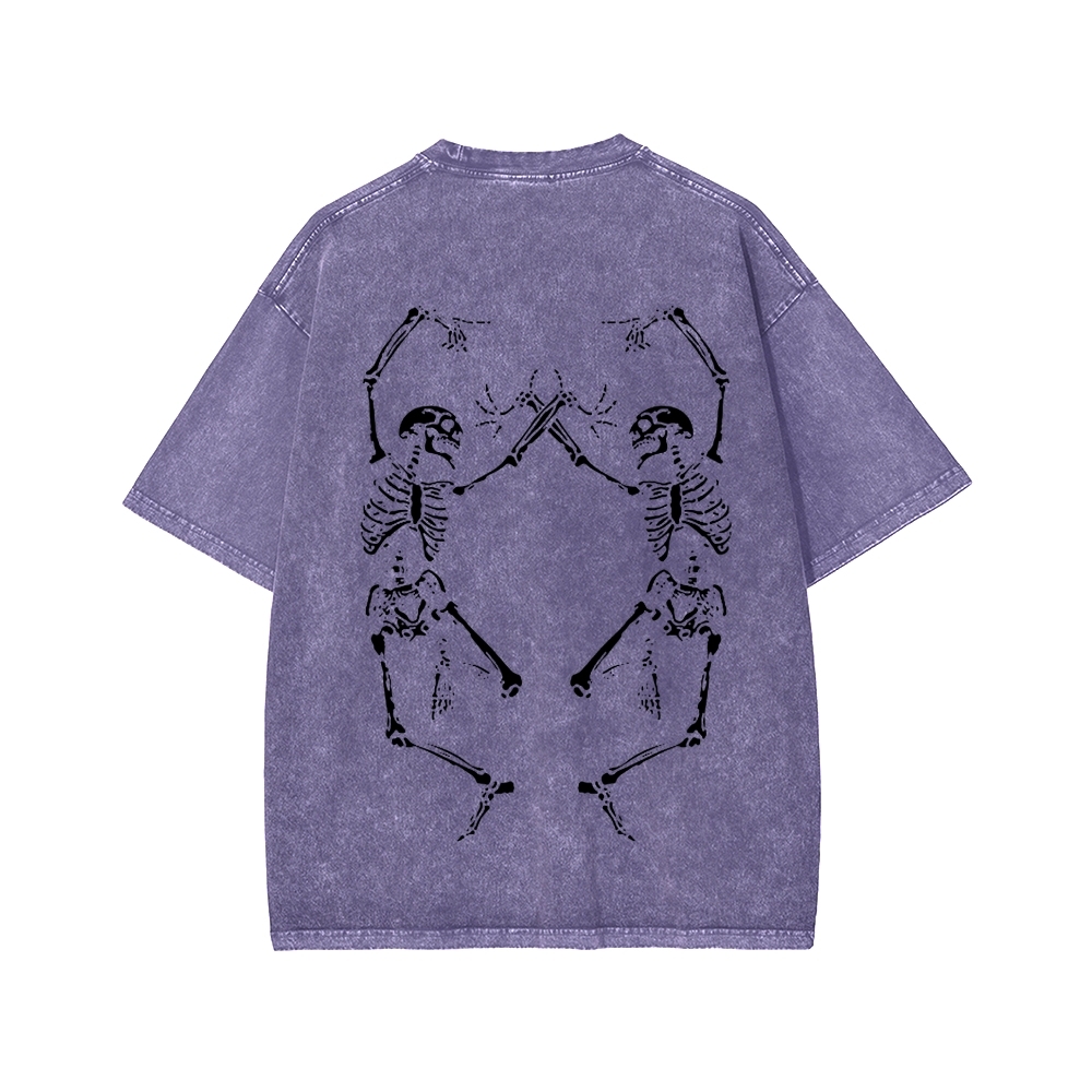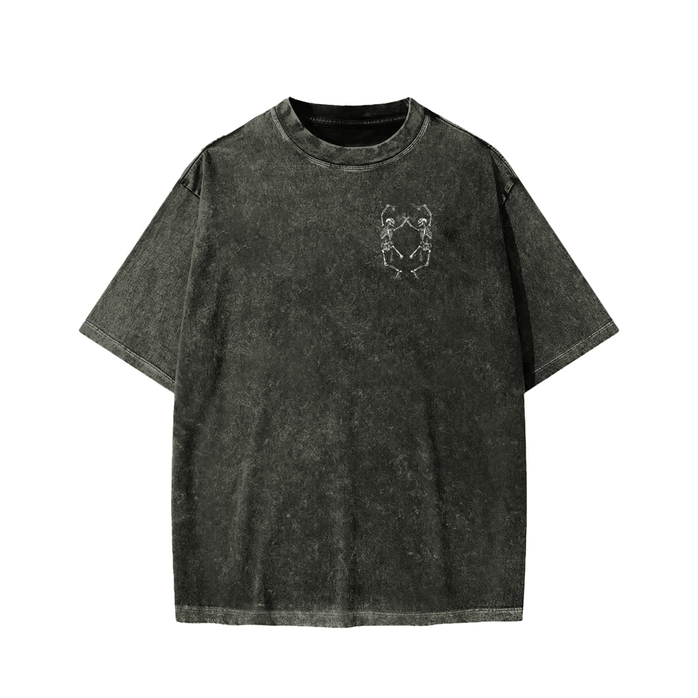 Dancing Skeleton Front And Back Printing Washed T-shirt