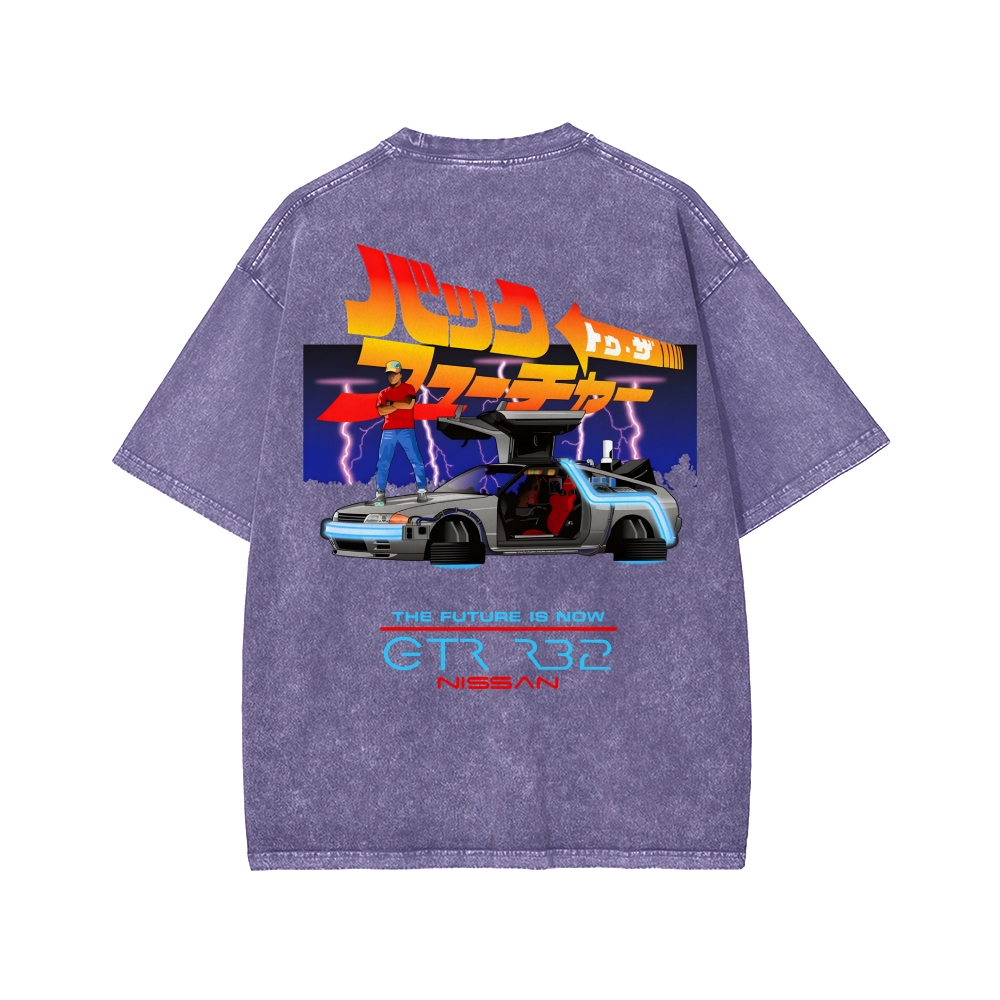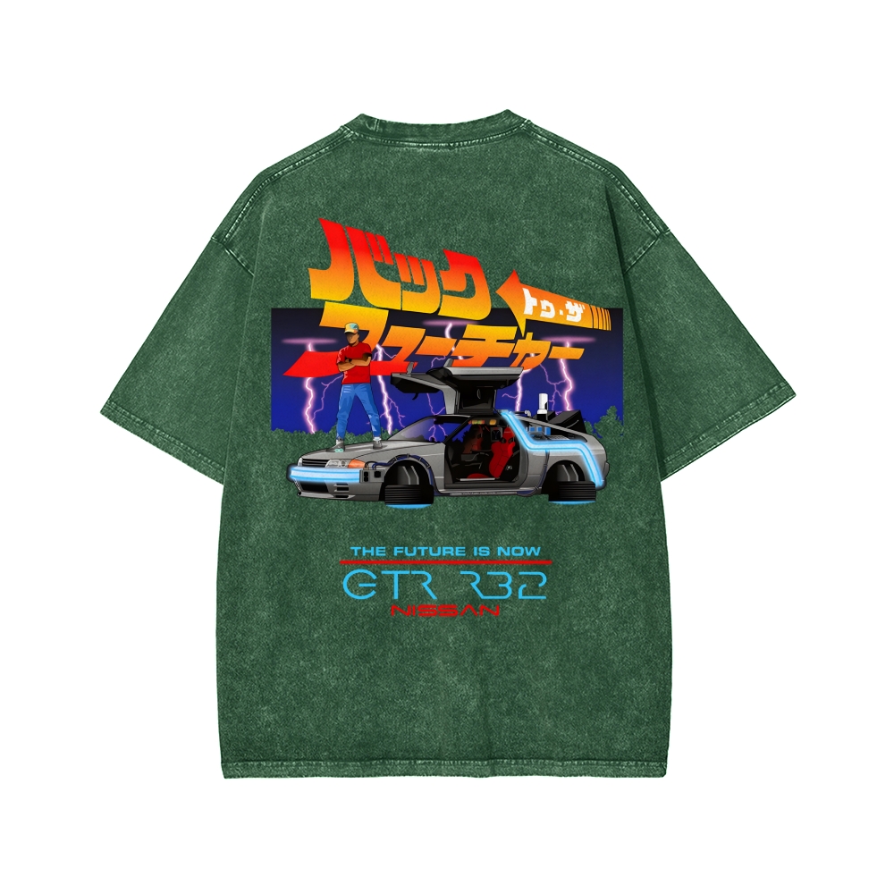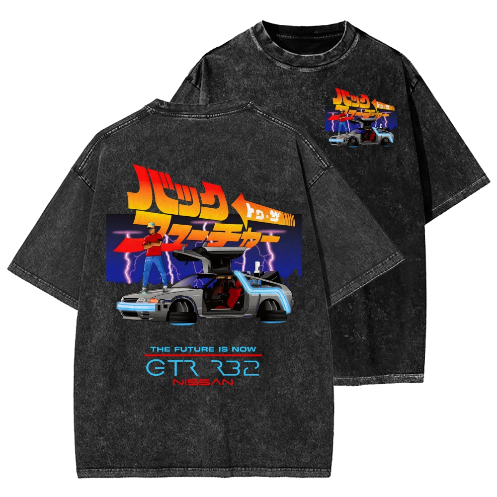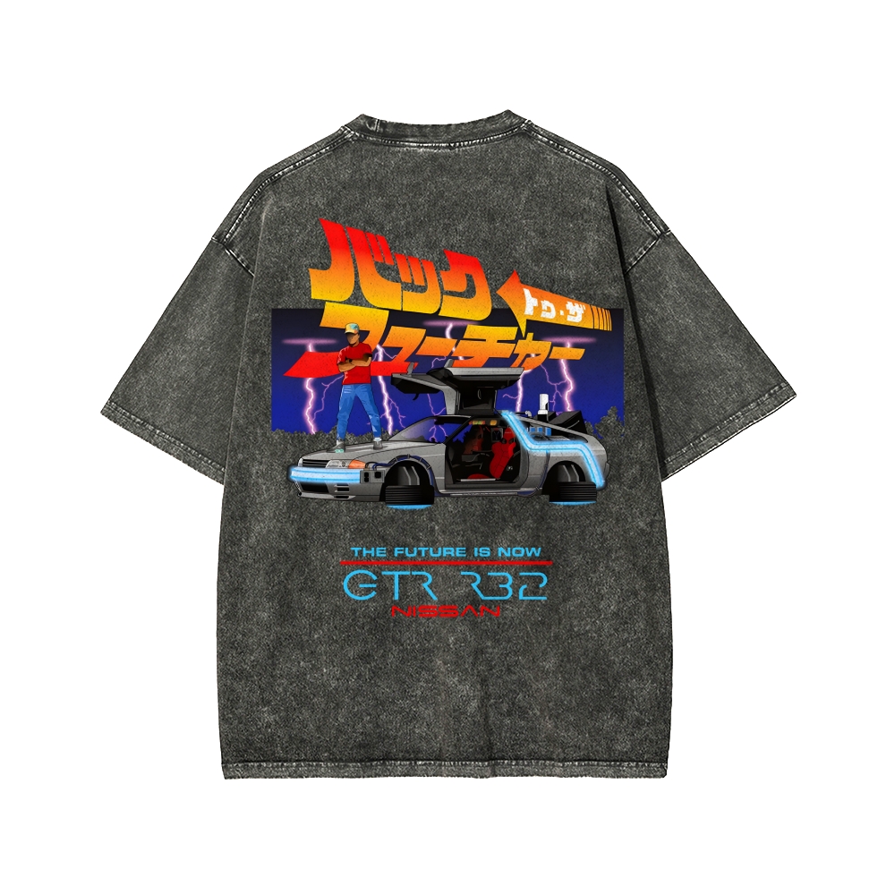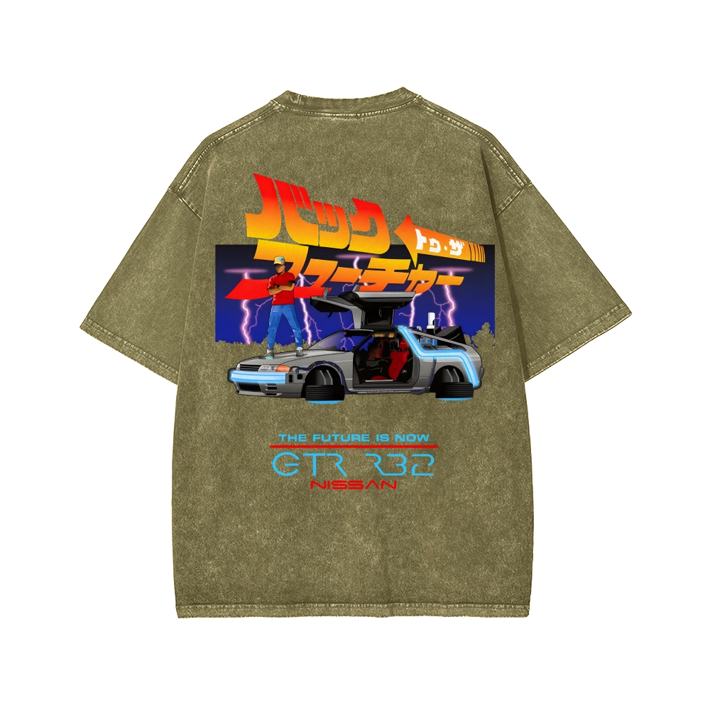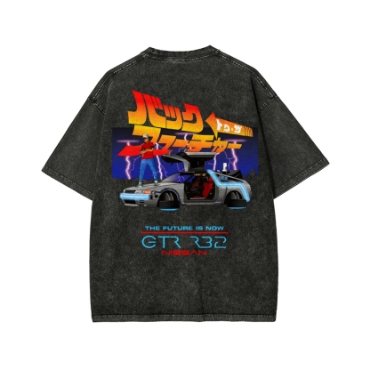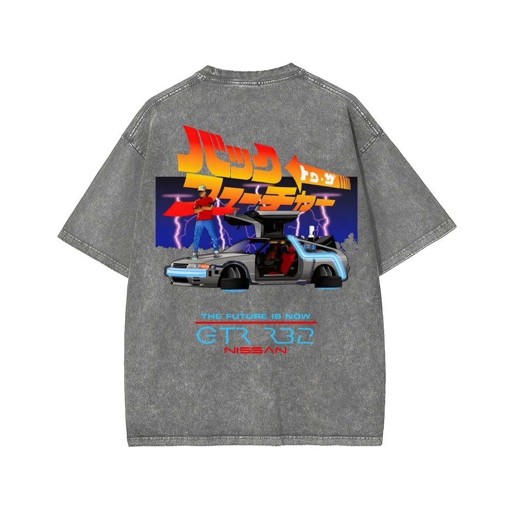 De Lorean GTR R32 Front And Back Printing Washed T-shirt