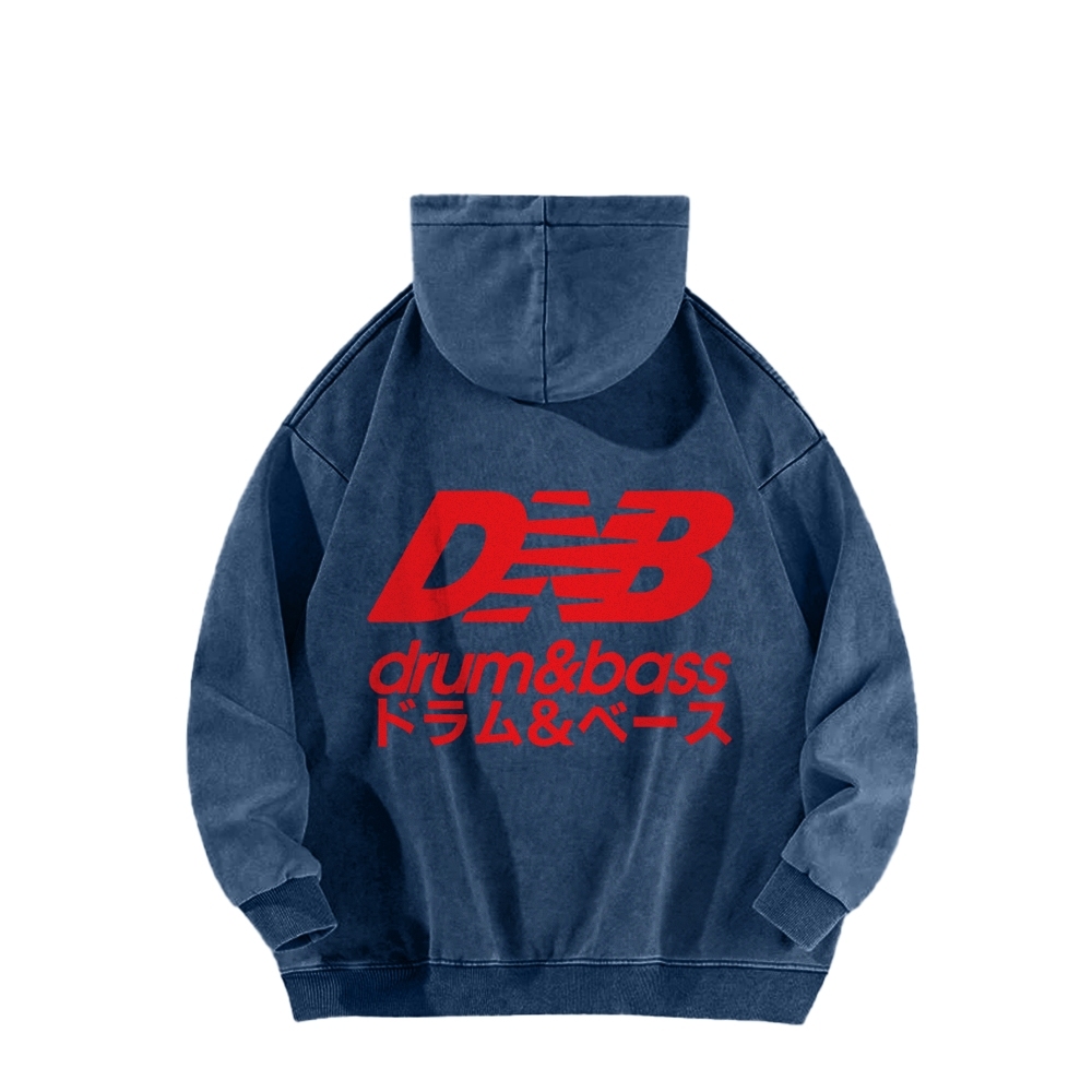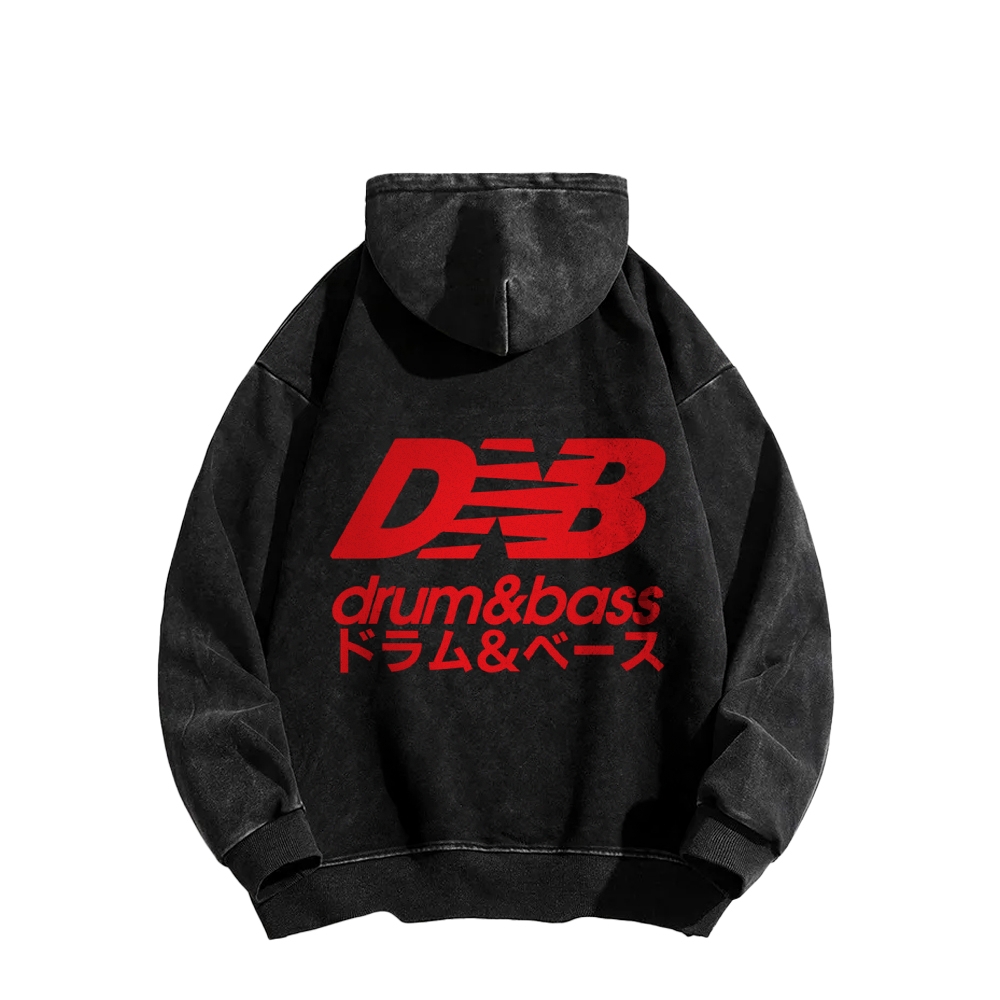 Drum And Bass Vintage Front And Back Printing Washed Hoodie