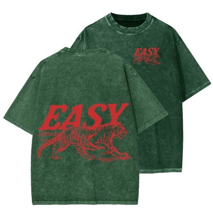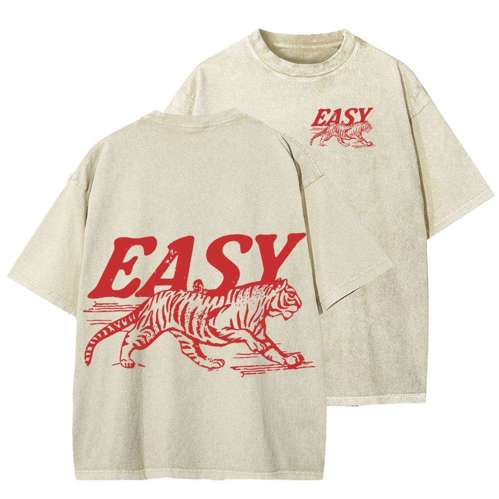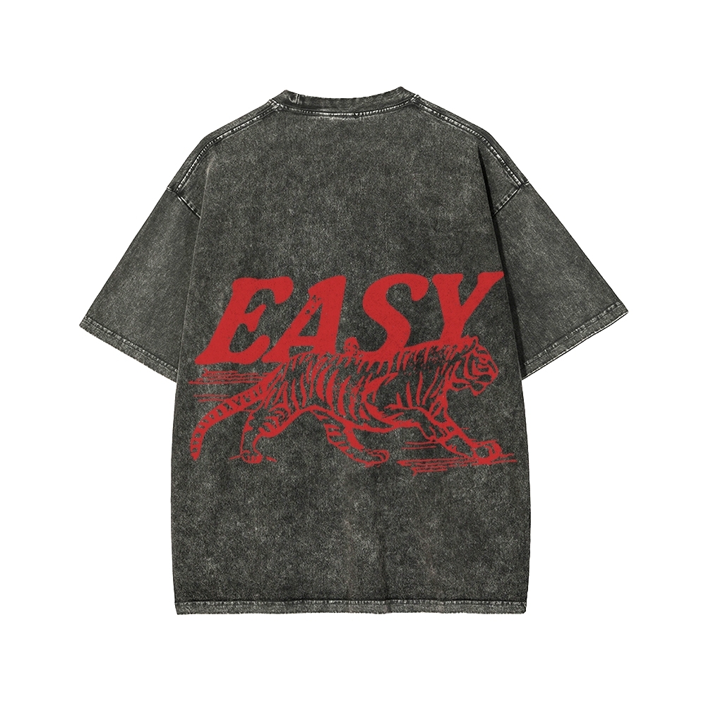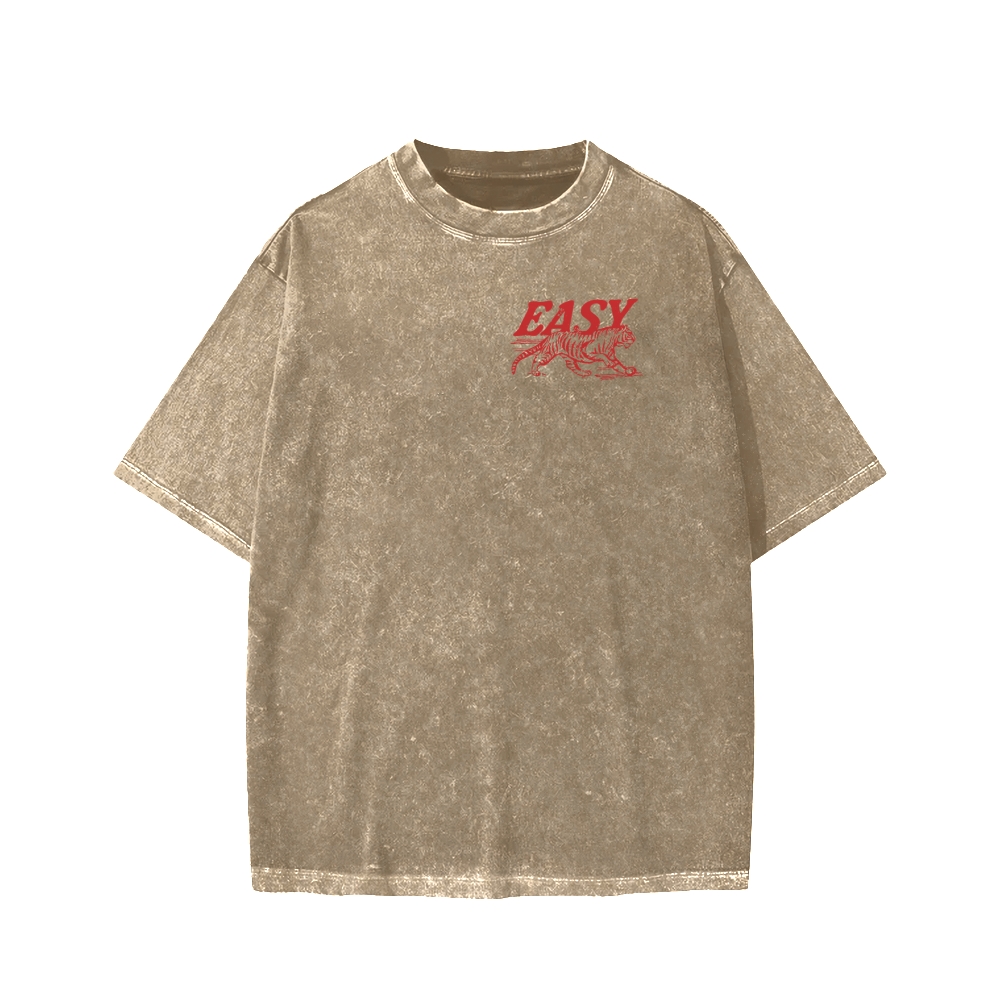 Easy Tiger Front And Back Printing Washed T-shirt