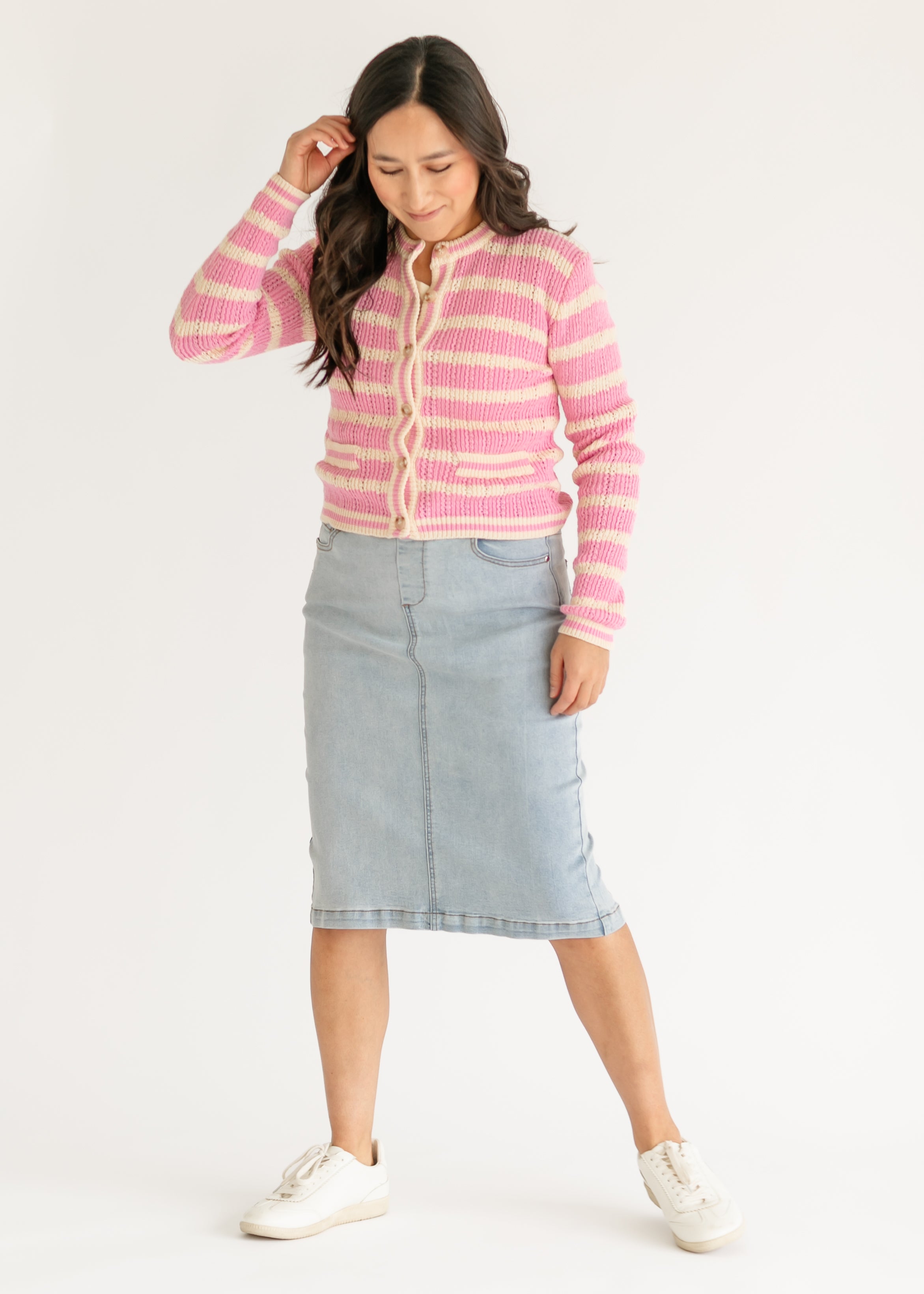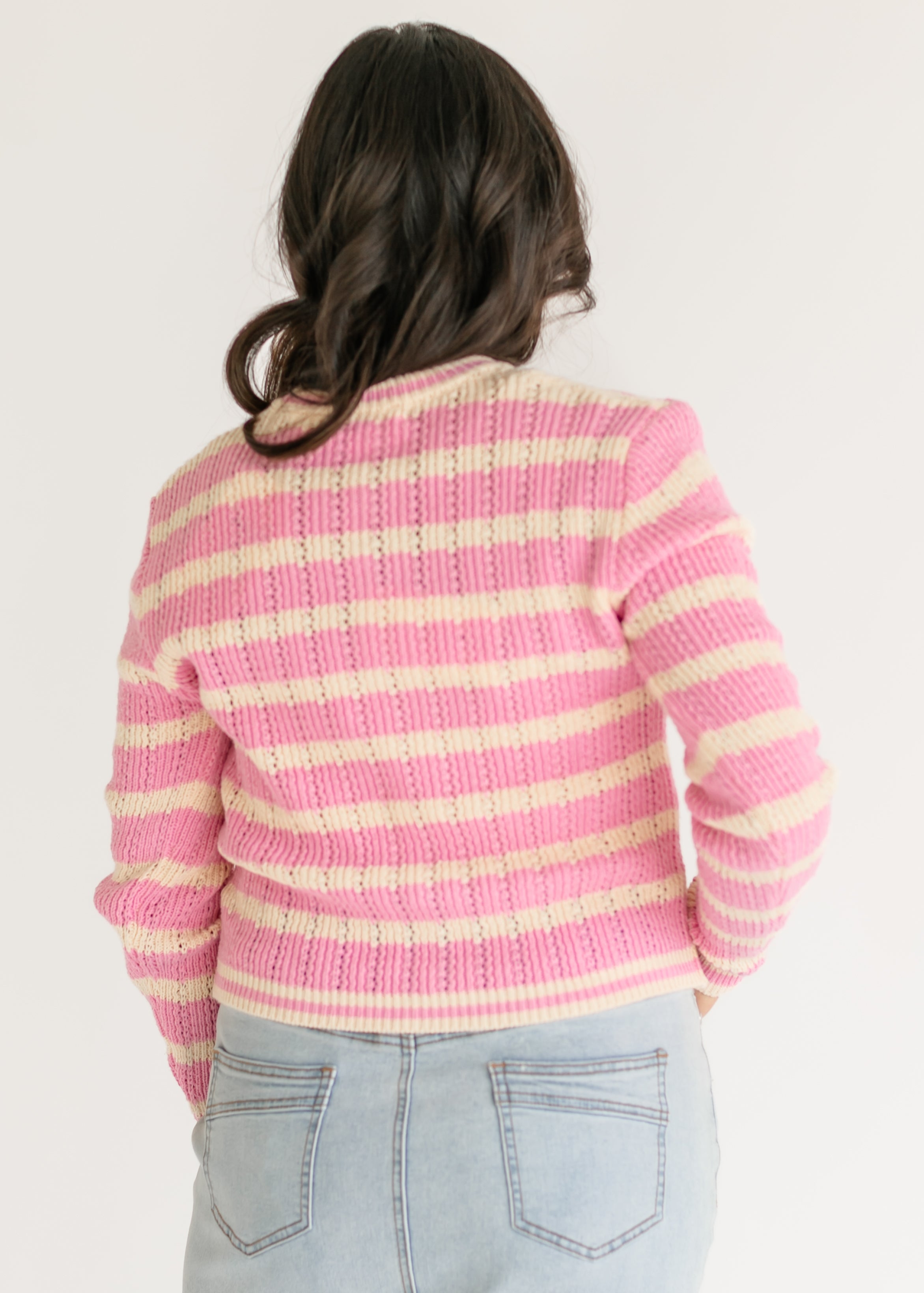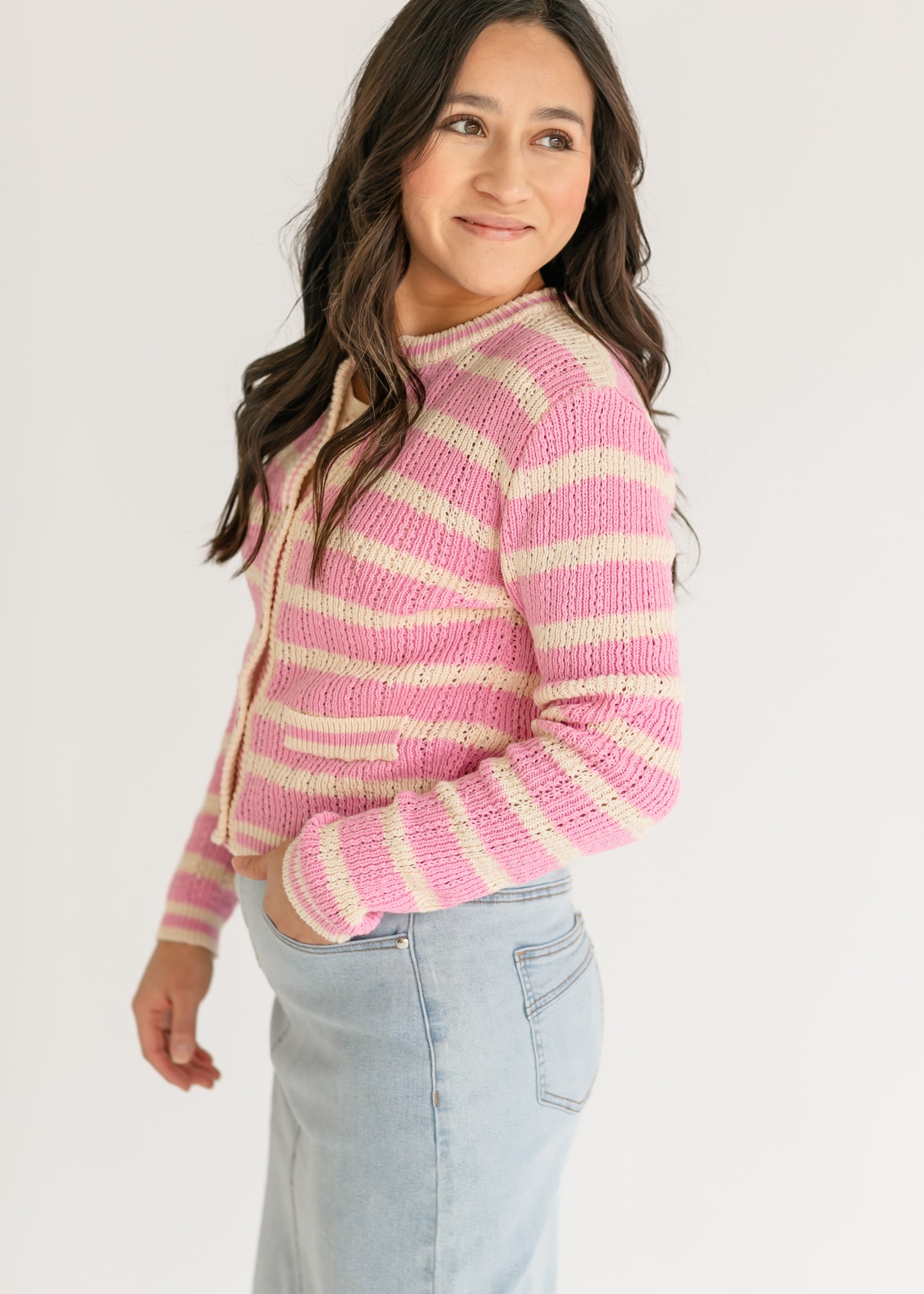Edolie Pink Striped Button Up Cardigan - FINAL SALE