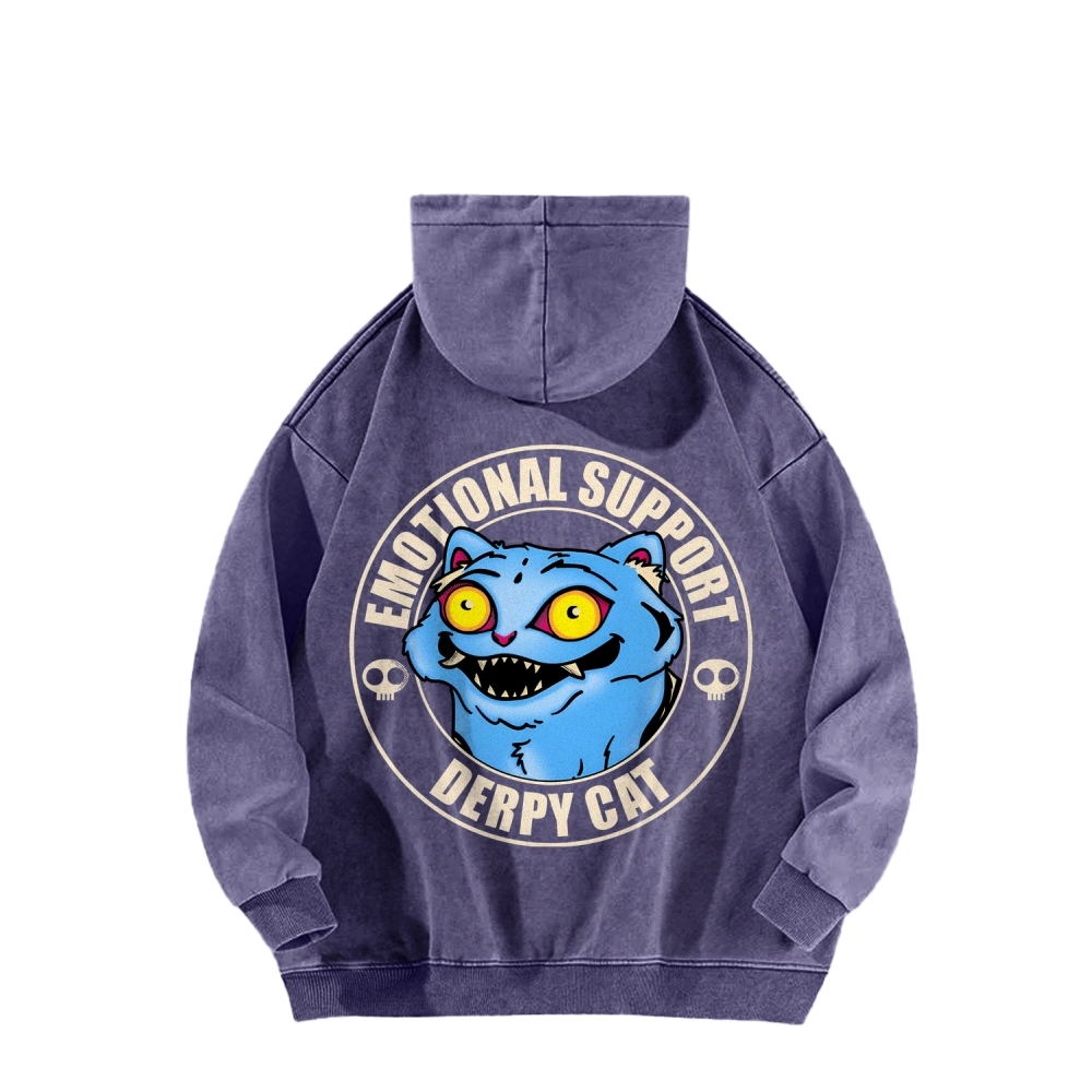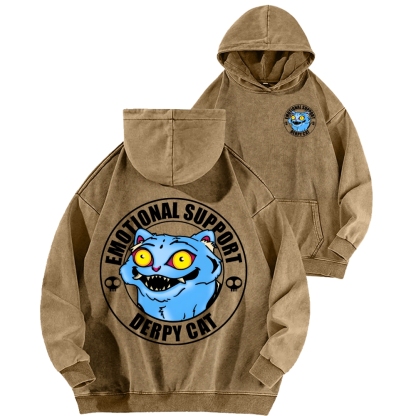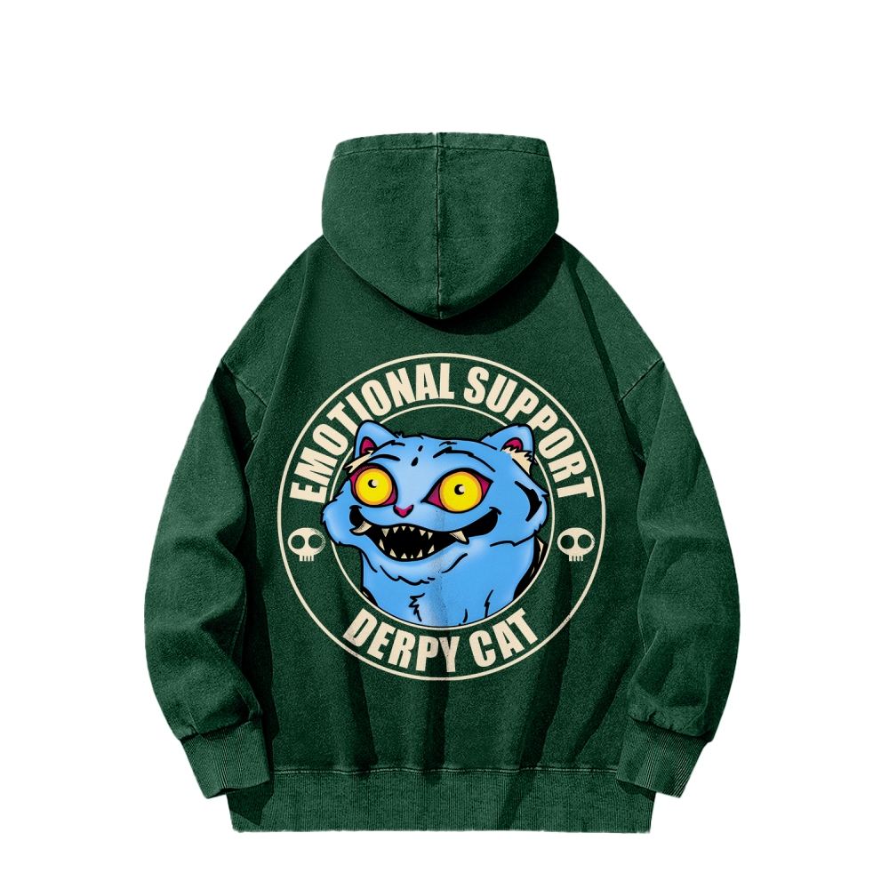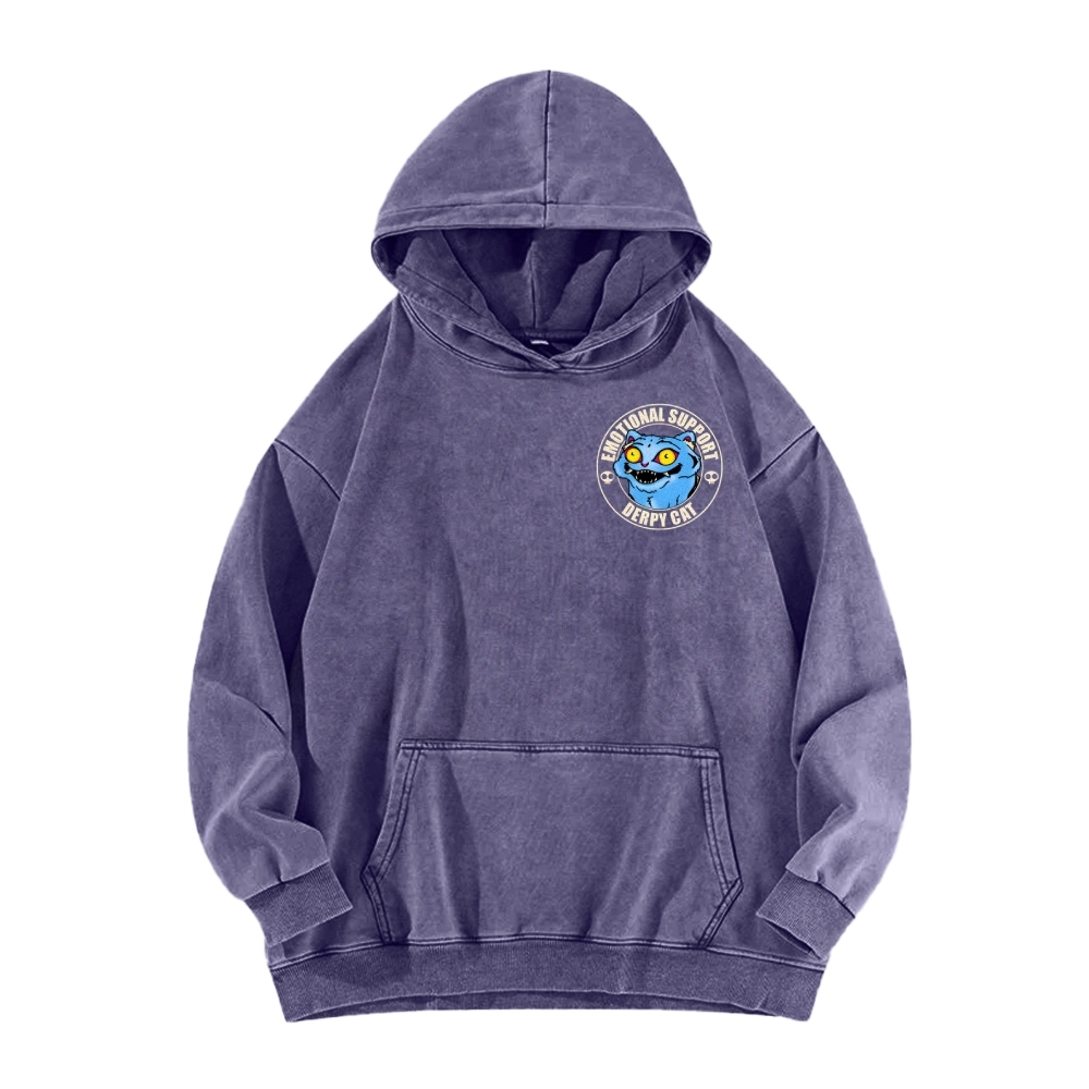 Emotional Support Cat Front And Back Printing Vintage Washed Hoodie
