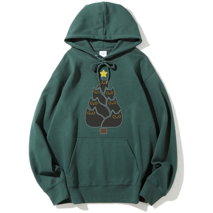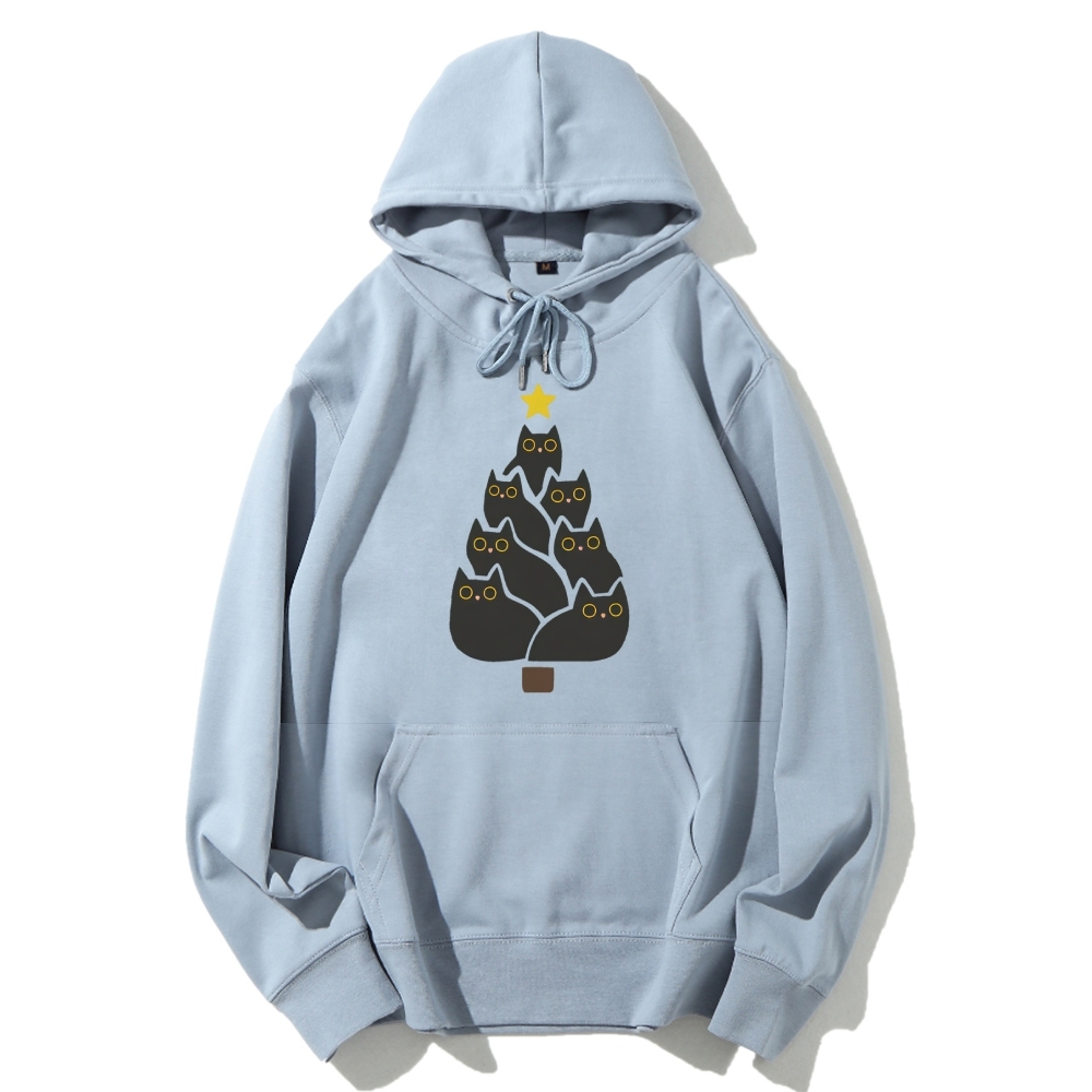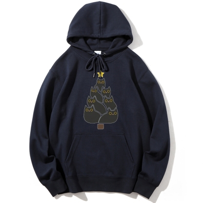 Enjoy Cool Funny Christmas Black Cats Decoration Tree Cotton Hoodie