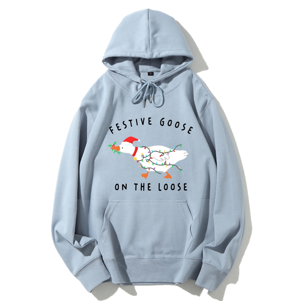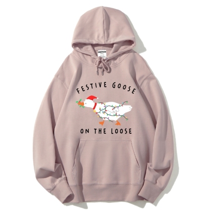 Festive Goose on the Loose Merry Christmas Cotton Hoodie