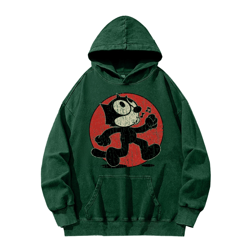 Funny Black Cat Vintage Washed Hoodie