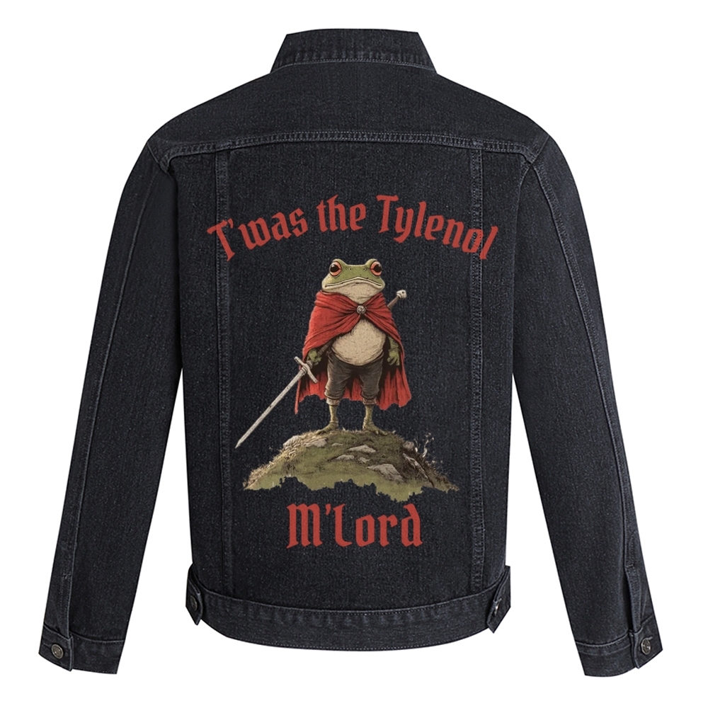 Funny Medieval Frog Knight twas the Tism M'lord Meme Denim Jacket