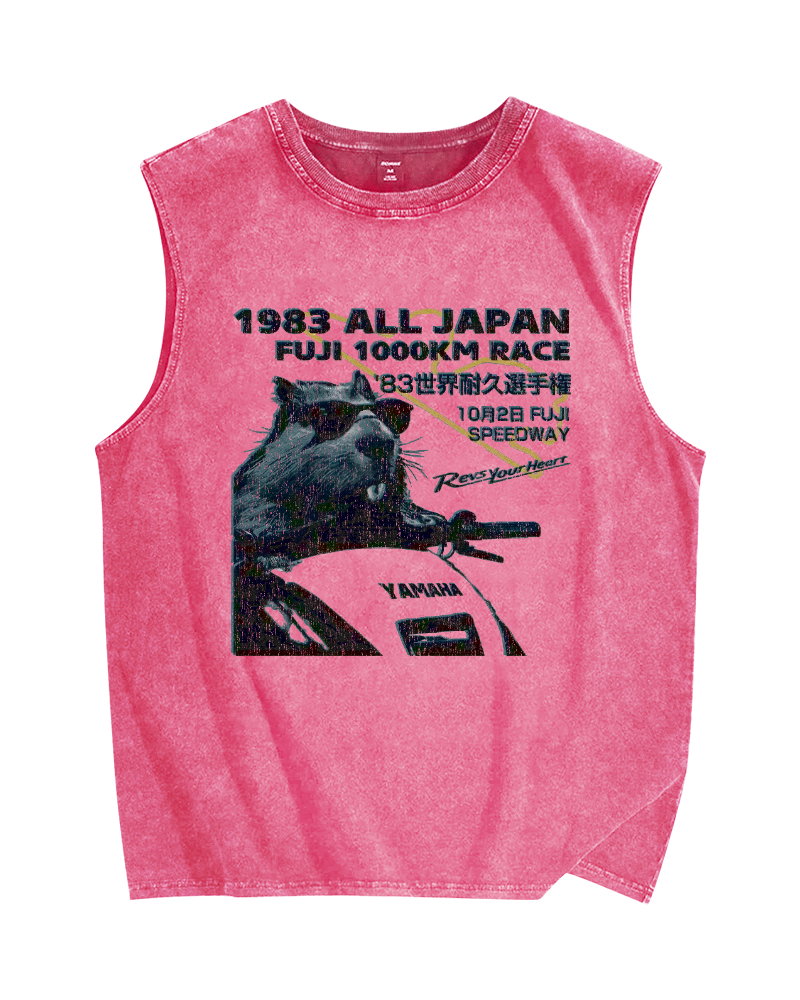 Funny Racing Beaver Vintage Distressed Washed Tank Top