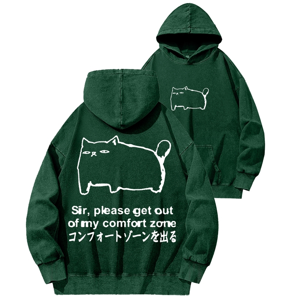 Get Out Of My Comfort Zone Funny Cat Front And Back Printing Vintage Washed Hoodie
