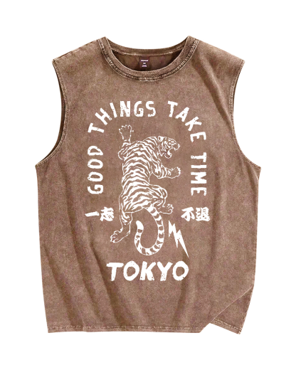 Good Things Take Time Tiger Vintage Distressed Washed Tank Top