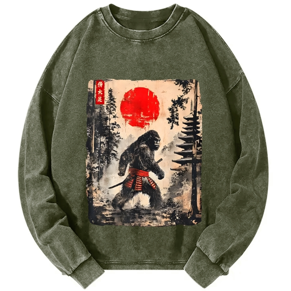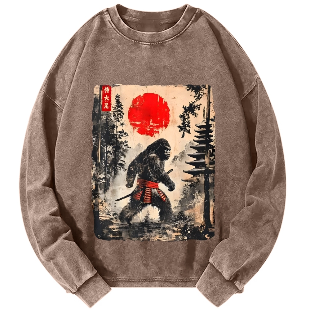 Gorilla Samurai Japanese Ukiyo-E Vintage Washed Sweatshirts