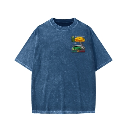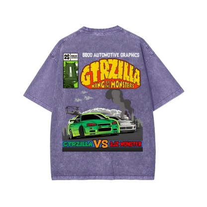 GTRZILLA R34 Front And Back Printing Washed T-shirt