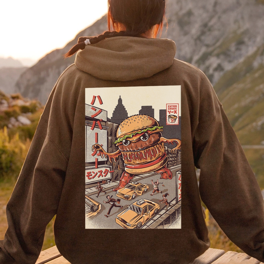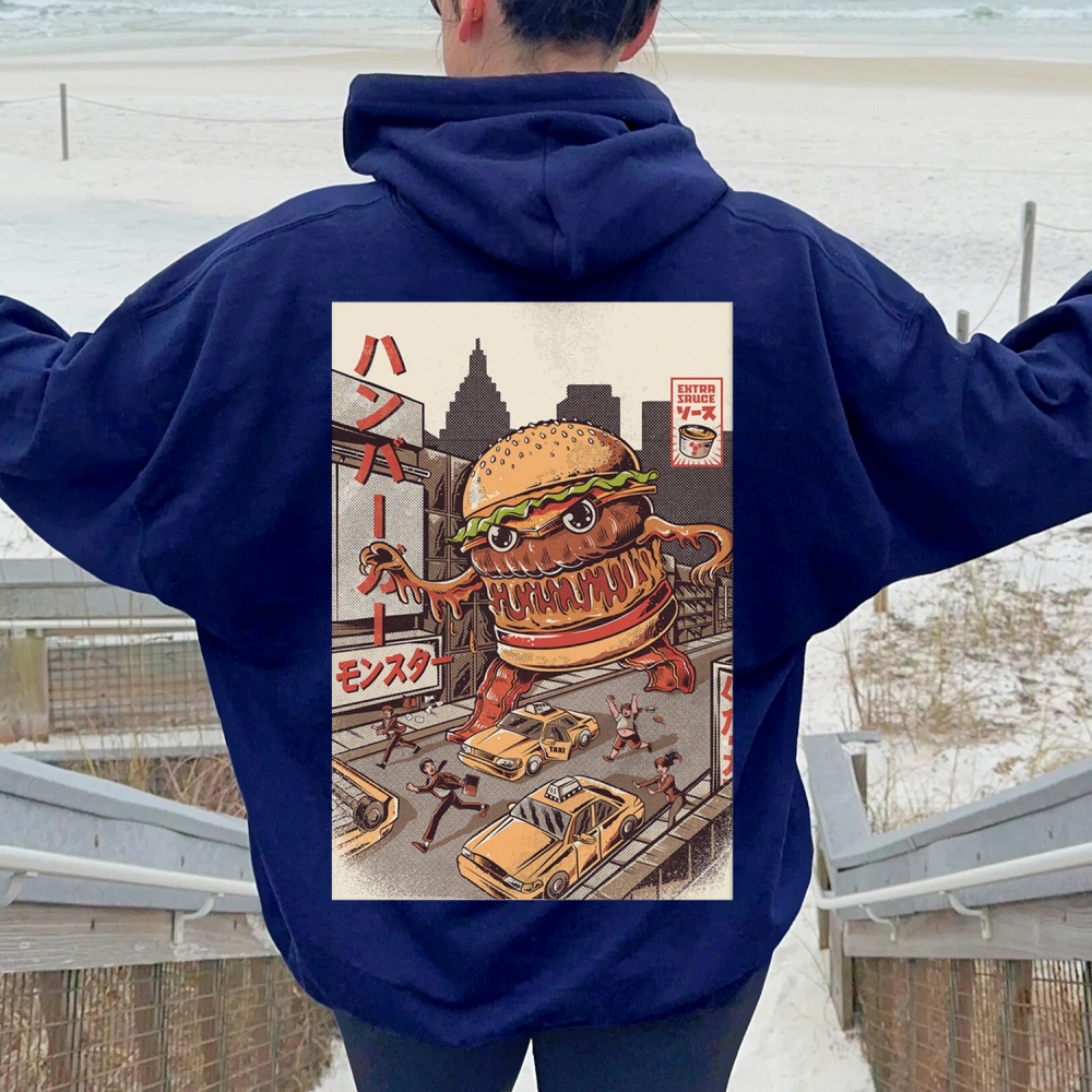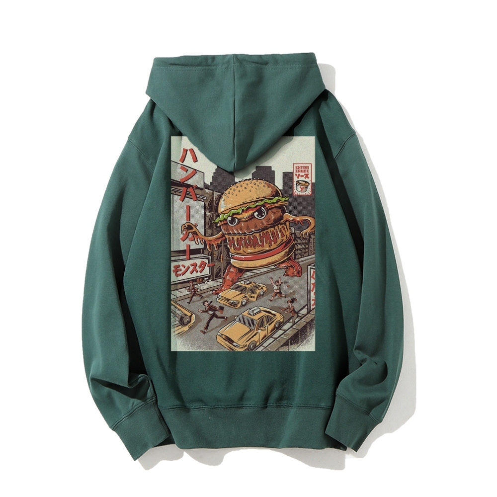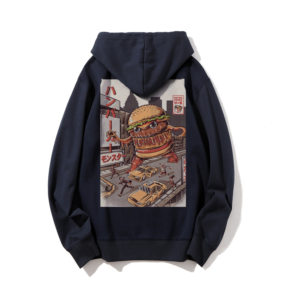 Hamburger Monster Printed Back Cotton Hoodie