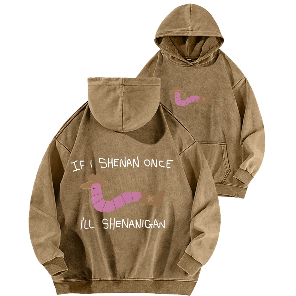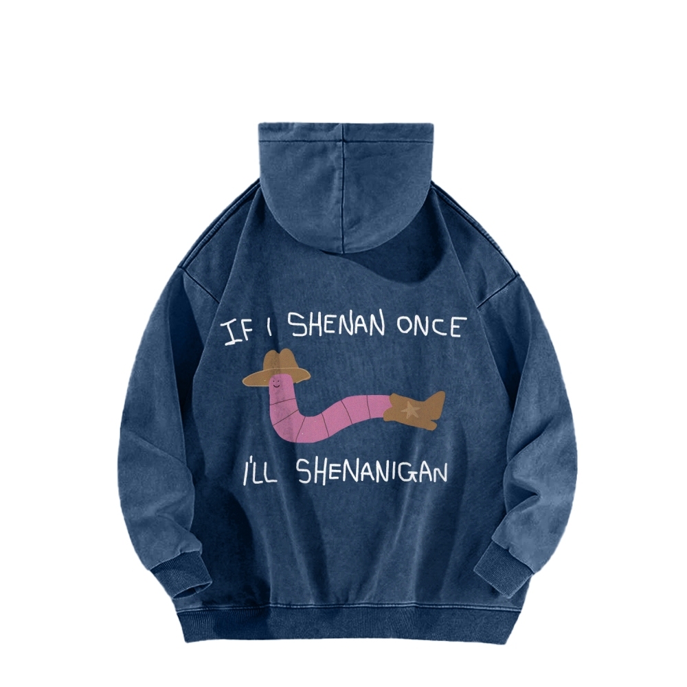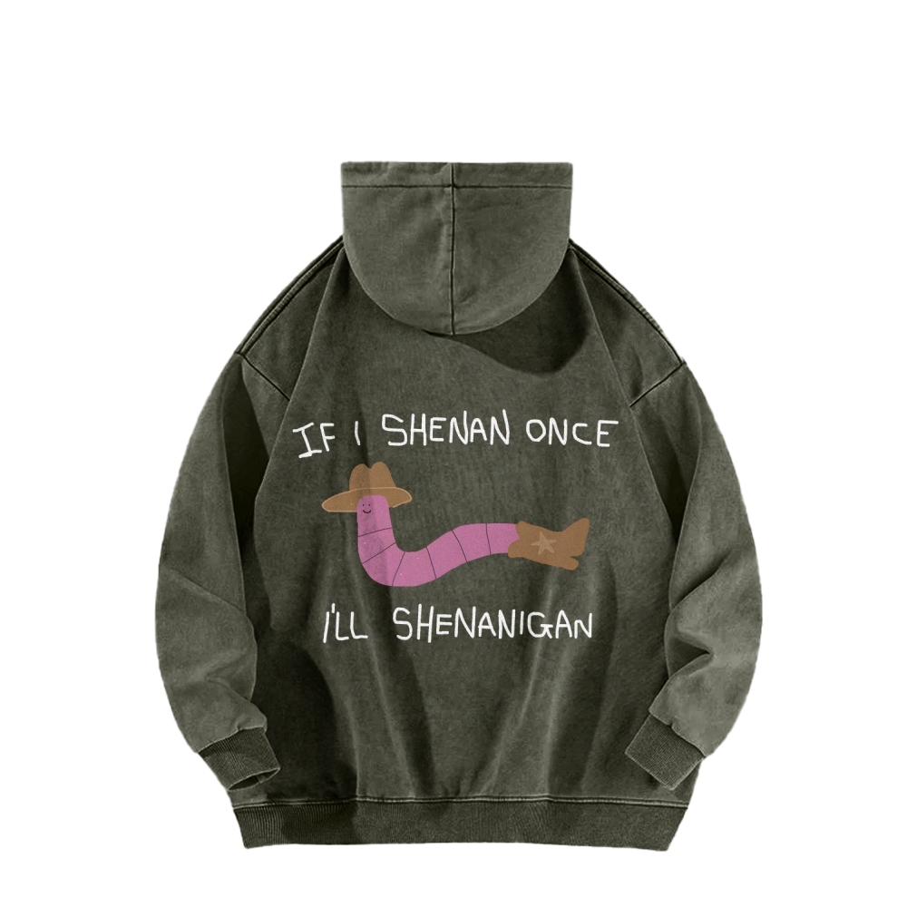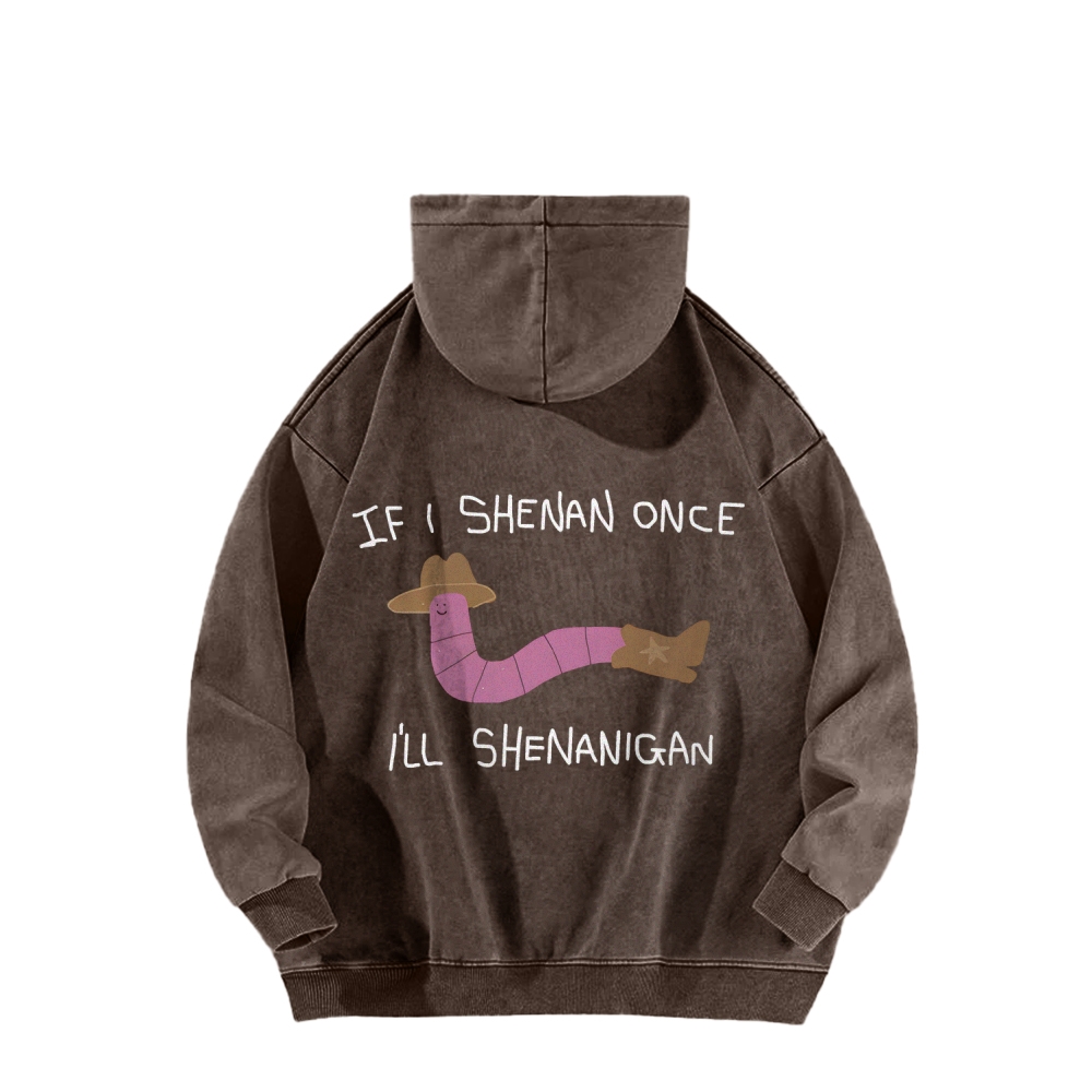 If I Shenan Once I'll Shenanigan Front And Back Printing Vintage Washed Hoodie