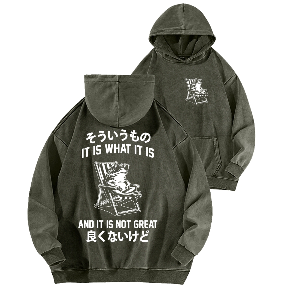 It Is What It Is Front And Back Printing Vintage Washed Hoodie