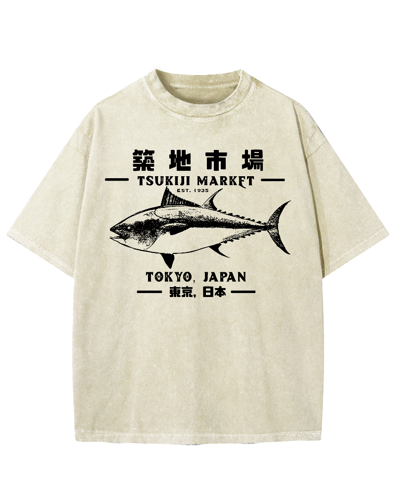Japan Tsukiji Market Tuna Vintage Washed T-shirt