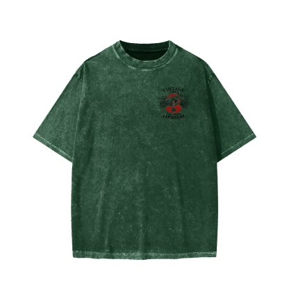 Japanese 1969 Retro Motor Front And Back Printing Washed T-shirt