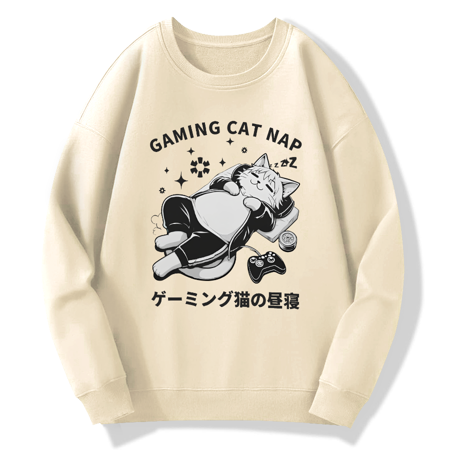 Japanese cat minimalist art Cotton Pullover Sweatshirt