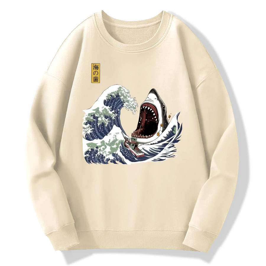 Japanese Great White Shark Cotton Pullover Sweatshirt