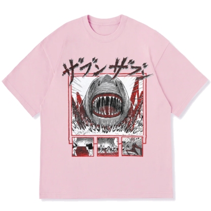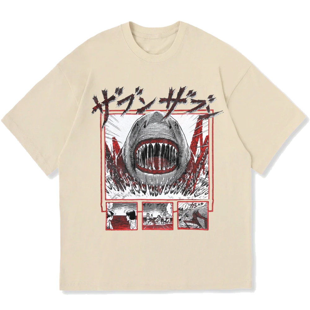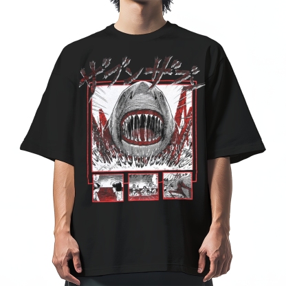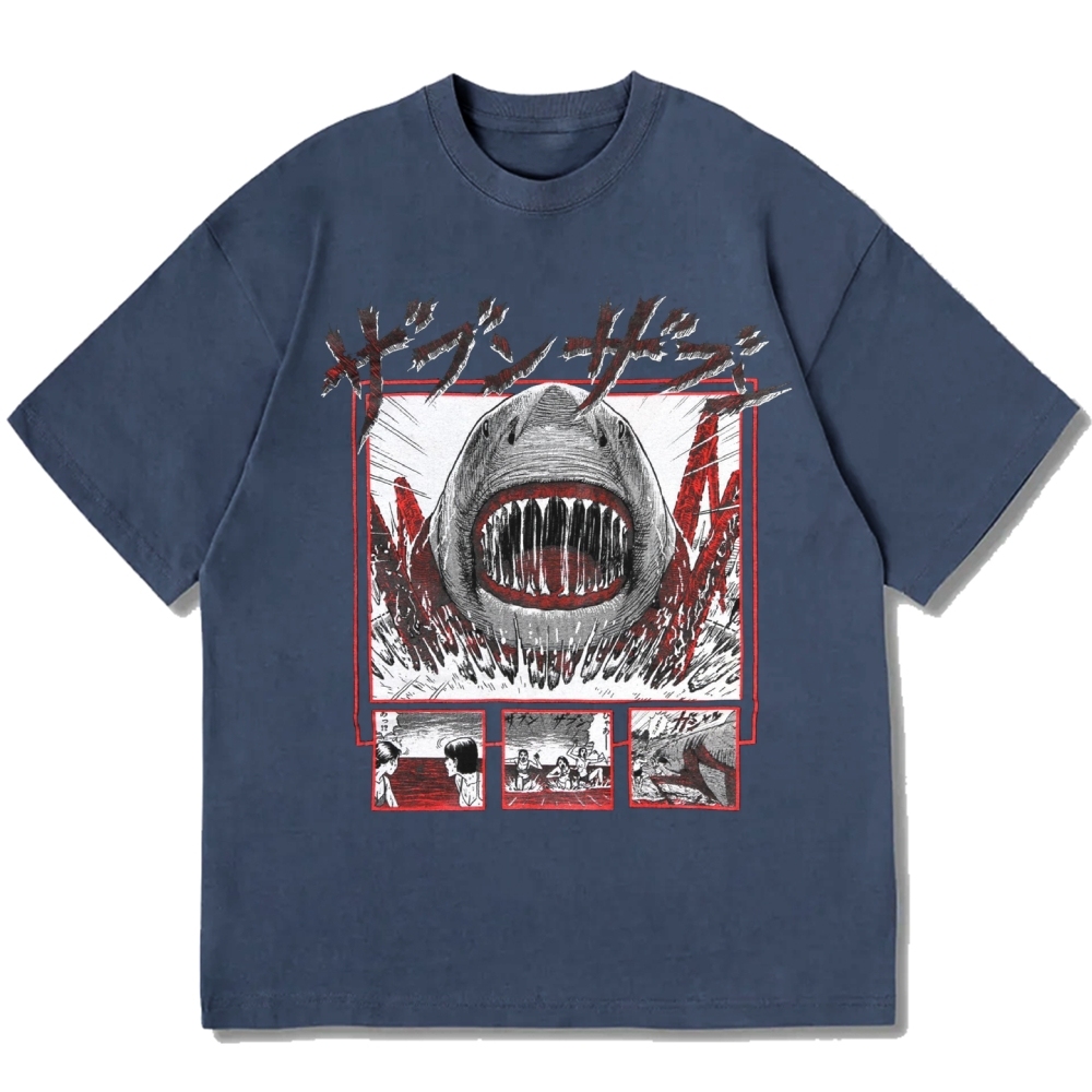Japanese Manga Shark Anime Back printing Cotton casual T-shirt