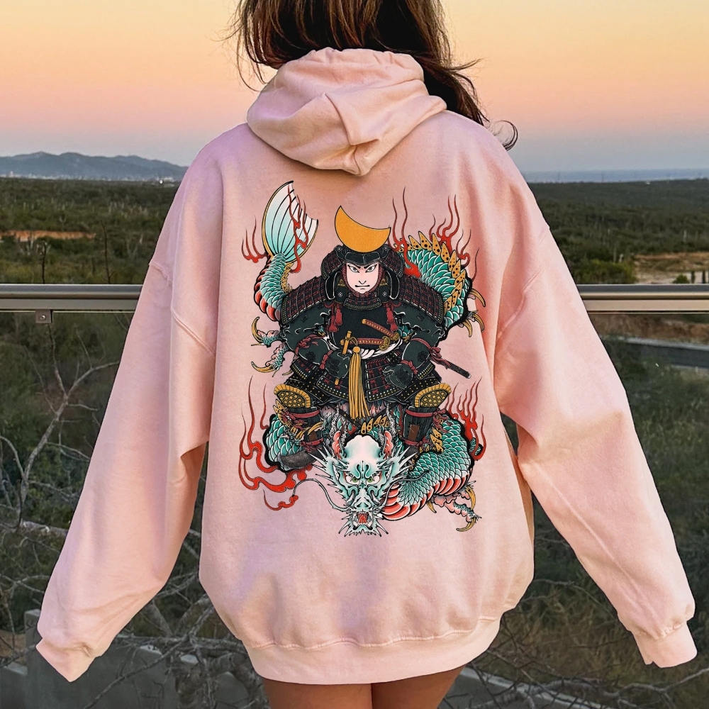Japanese Samurai Printed Back Cotton Hoodie