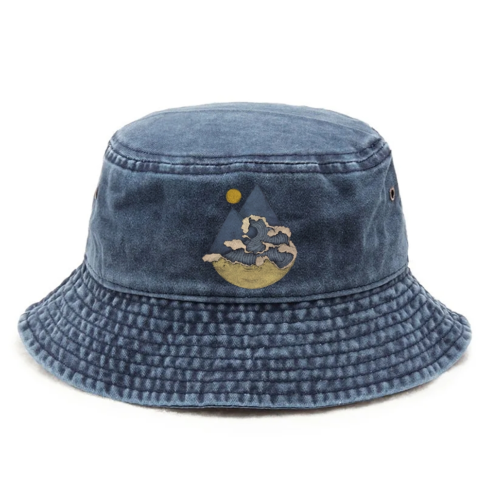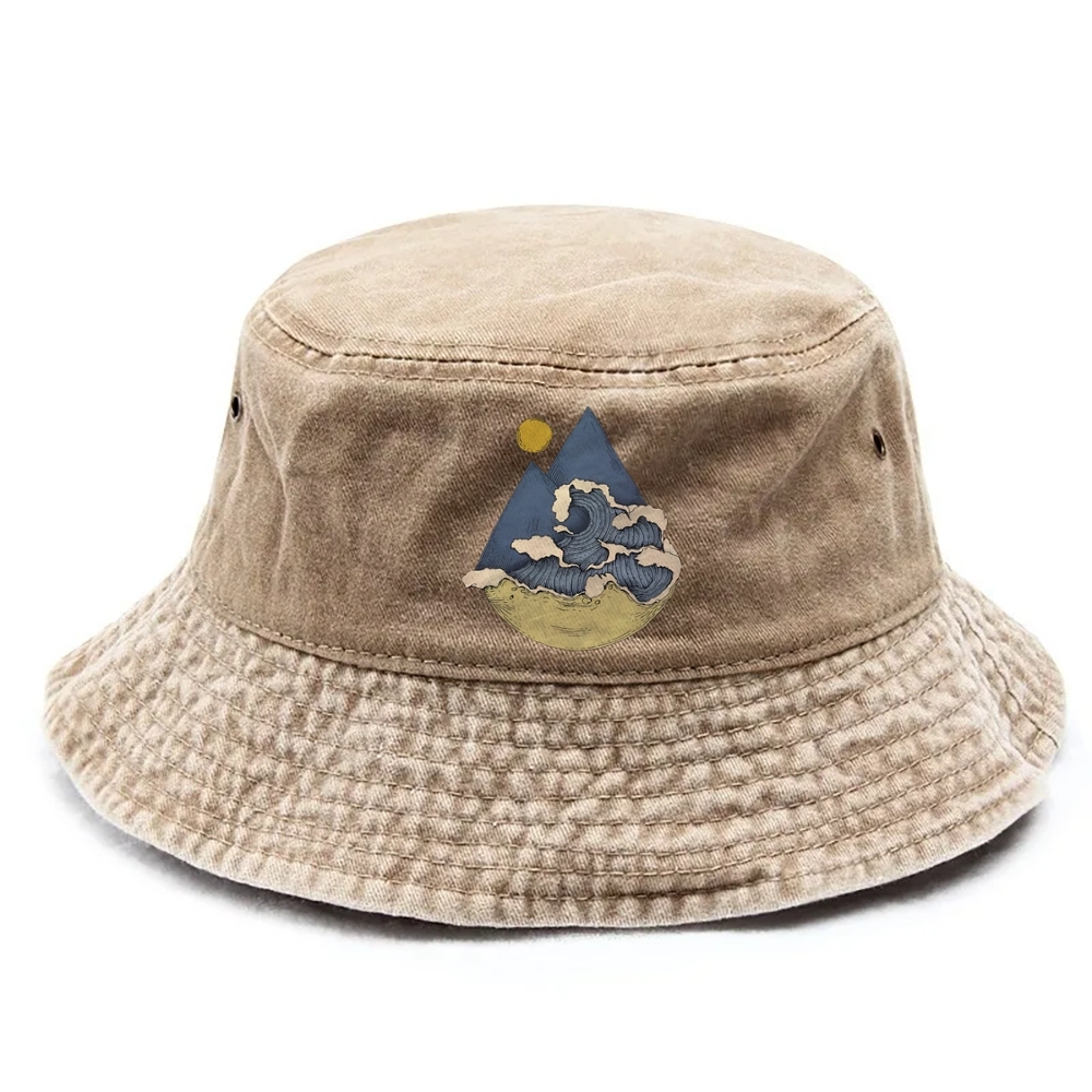 Japanese traditional pattern Mountains And Waves Simple Retro Bucket Hat