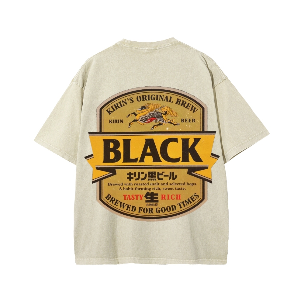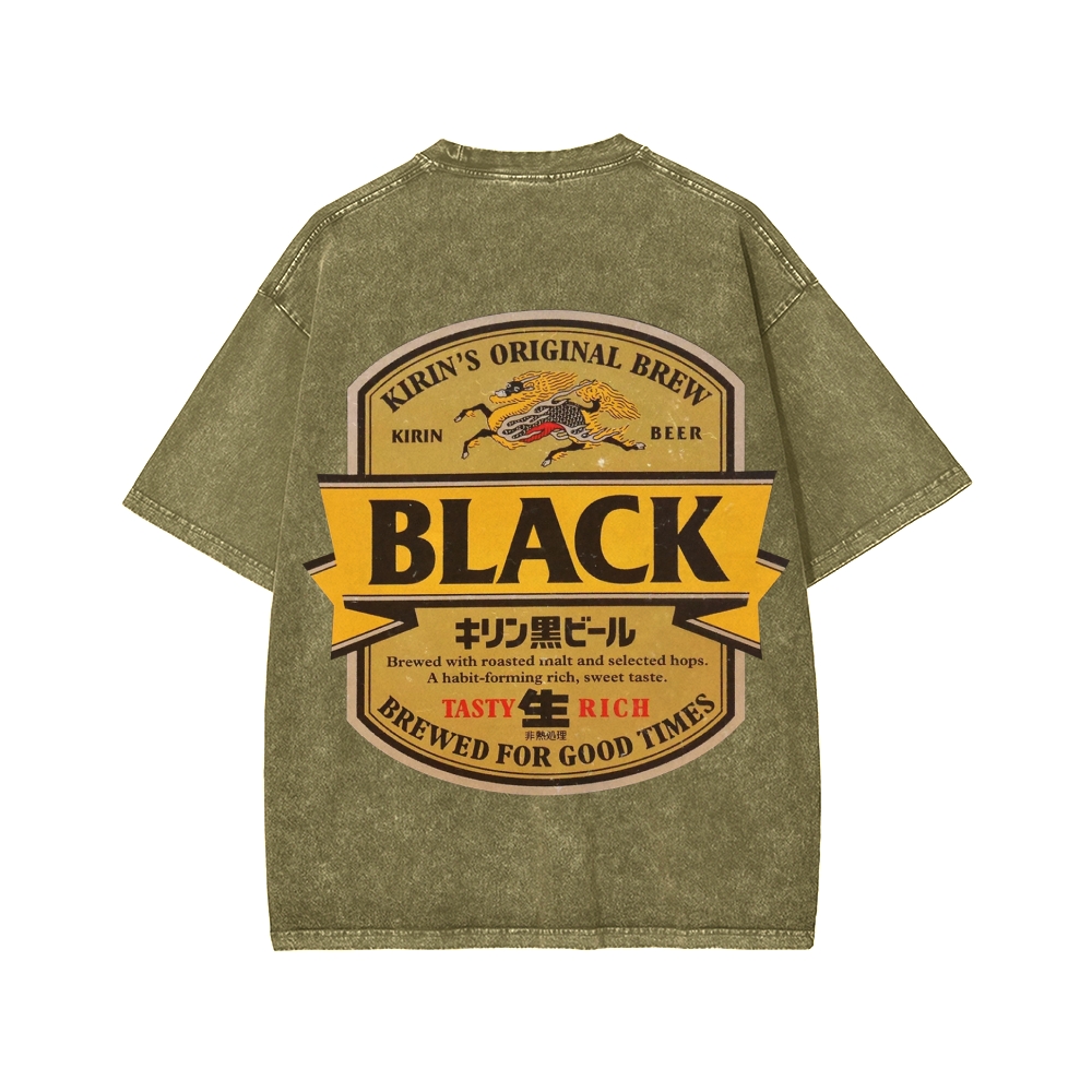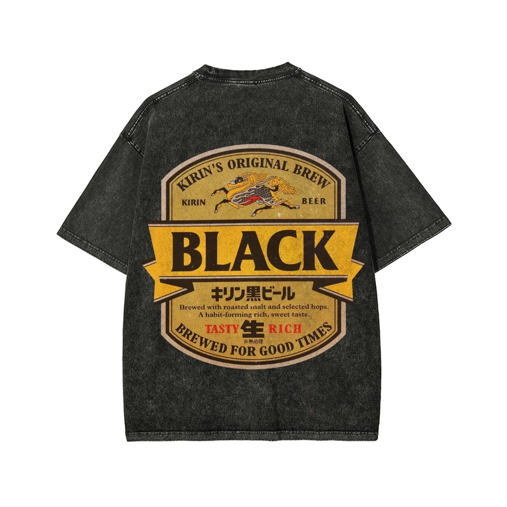 Kirin Black Beer Front And Back Printing Washed T-shirt