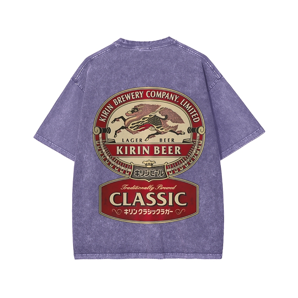 Kirin Classic Beer Front And Back Printing Washed T-shirt