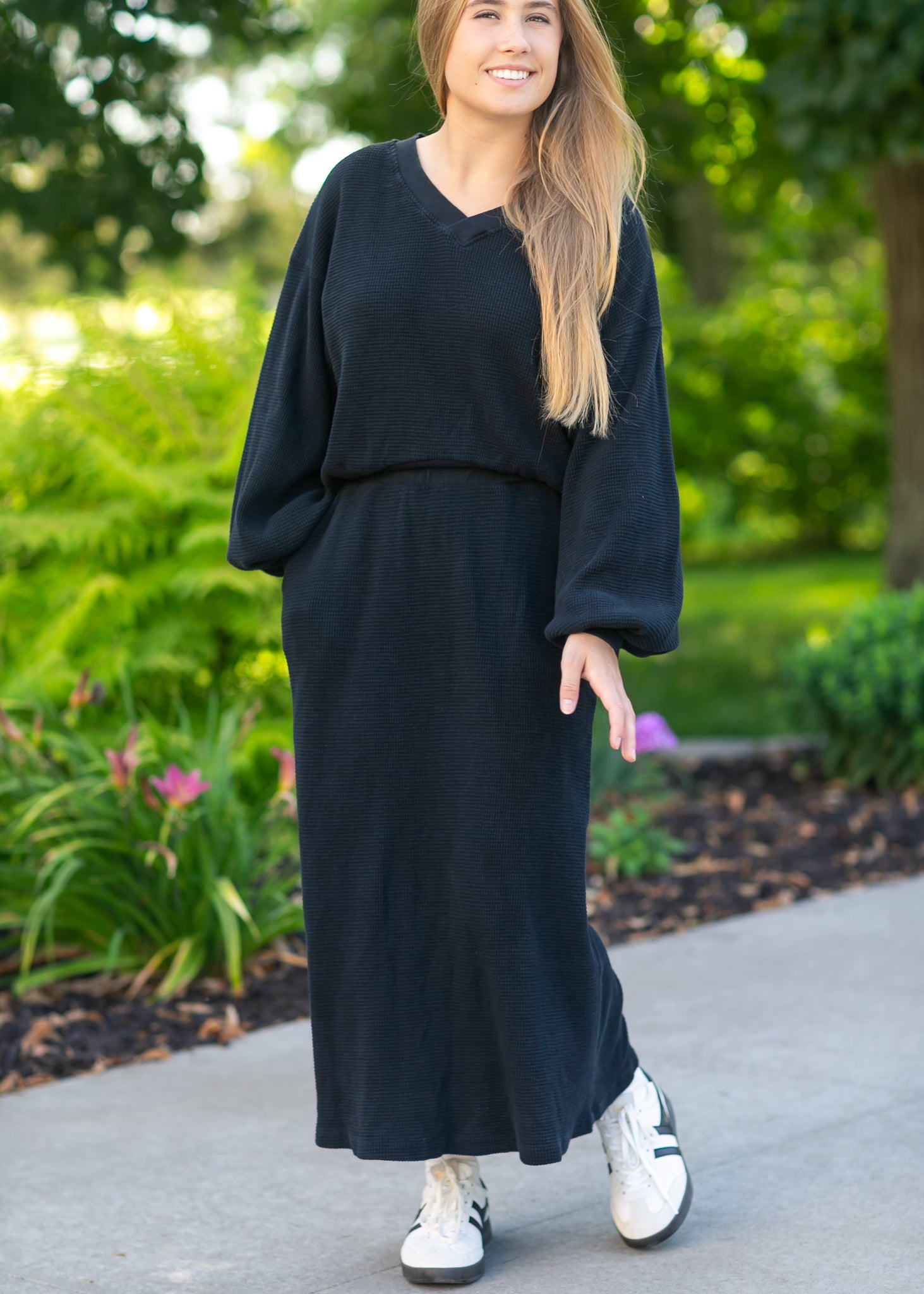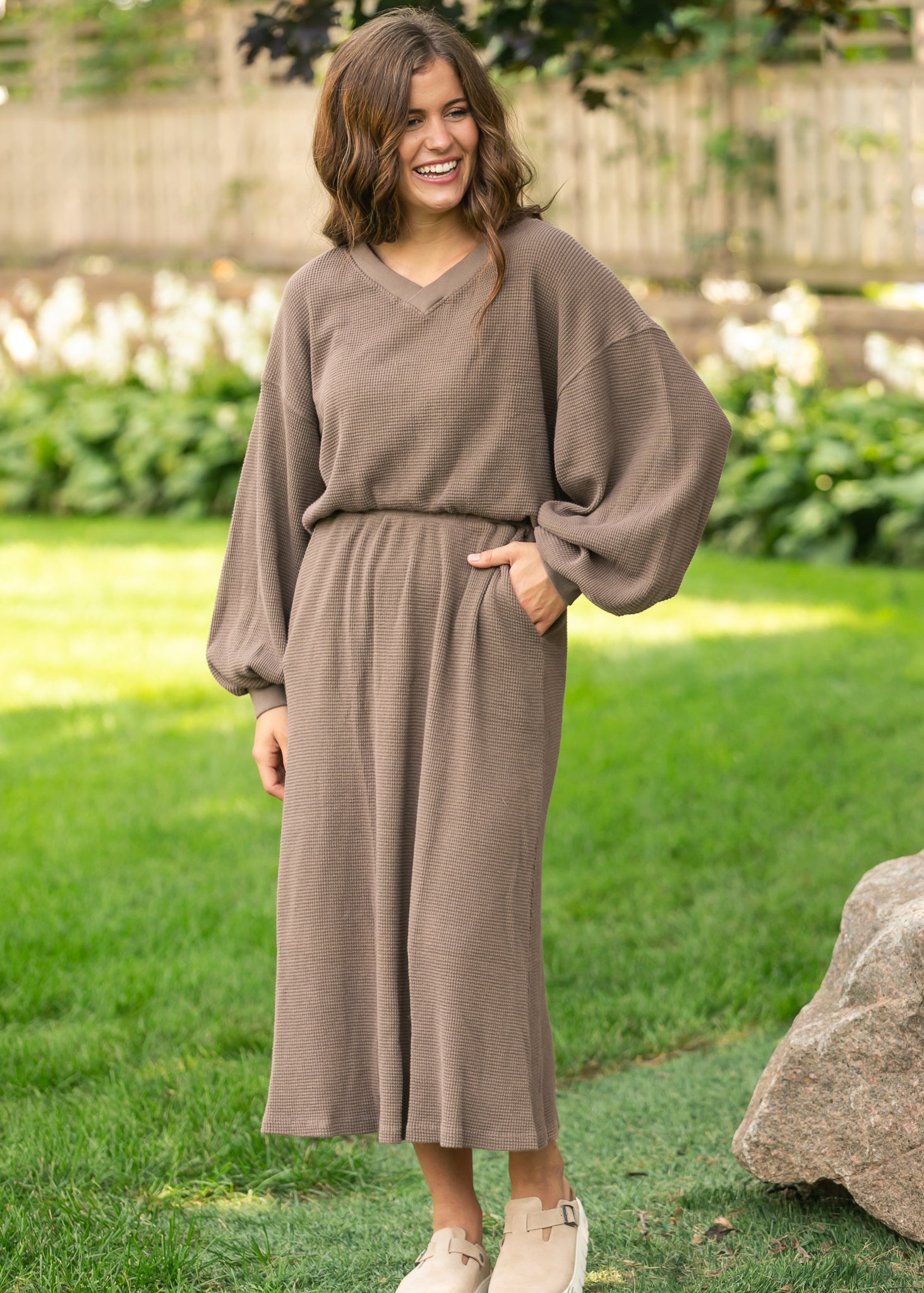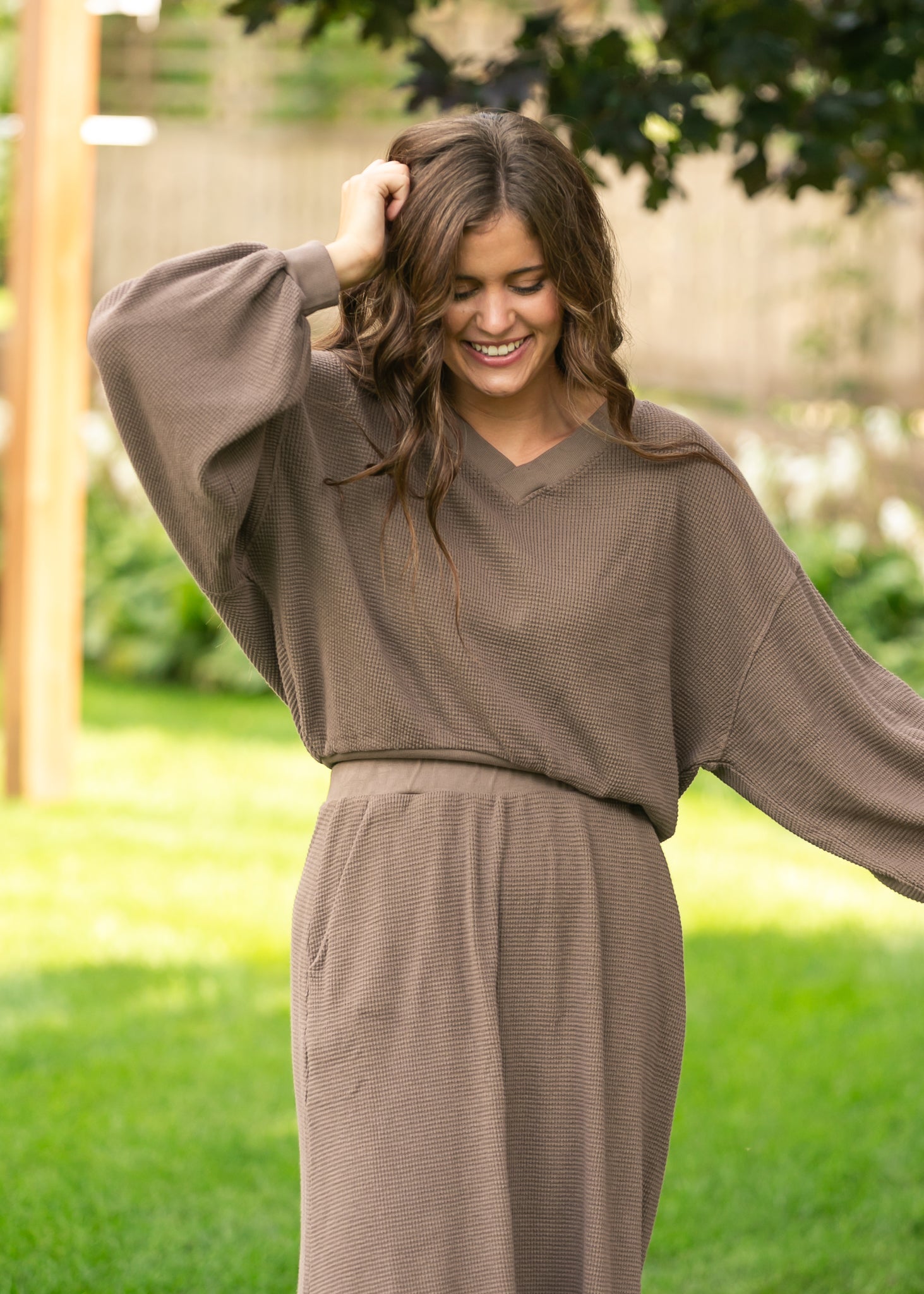 Lynette Waffle Thermal V-Neck Set - FINAL SALE
