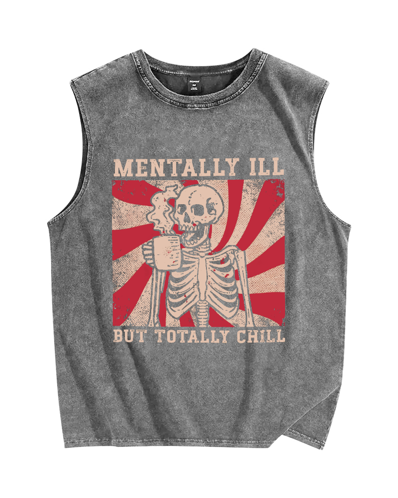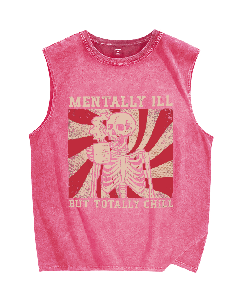 Mentally Ill But Totally Chill Vintage Distressed Washed Tank Top