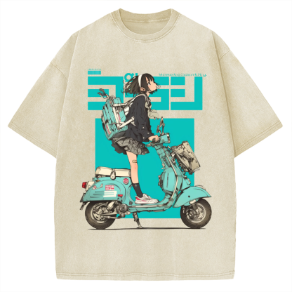 Motorcycle C50 Super Cub Girl Vintage Washed T-shirt