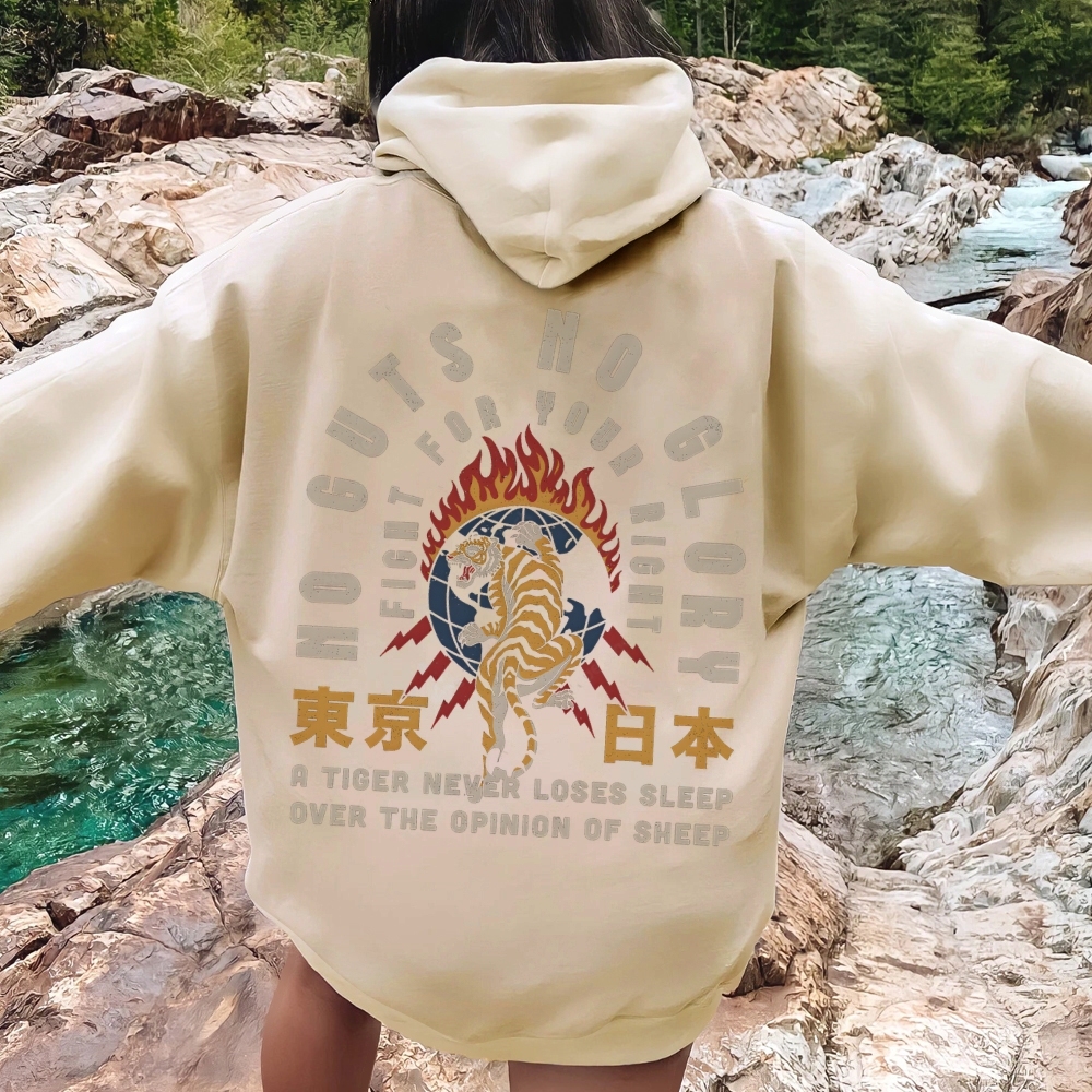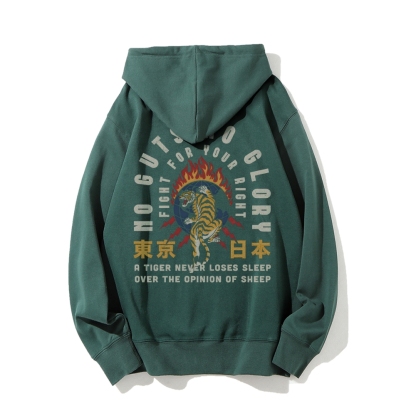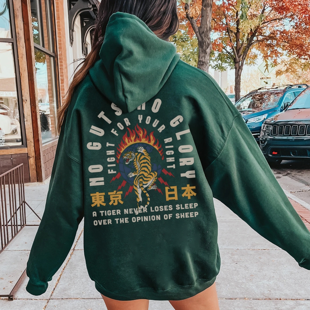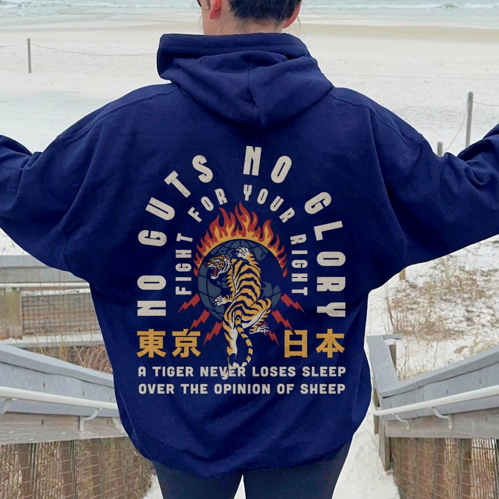 No guts no clory Tiger Printed Back Cotton Hoodie