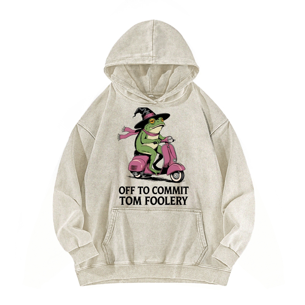 Off to Commit Tom Foolery Frog Vintage Washed Hoodie