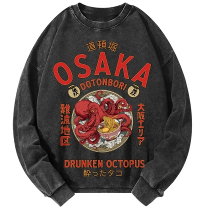 Osaka Drunken Octopus Eating Ramen Vintage Washed Sweatshirts
