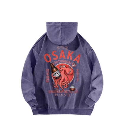 Osaka Dunken Octopus Front And Back Printing Vintage Washed Hoodie